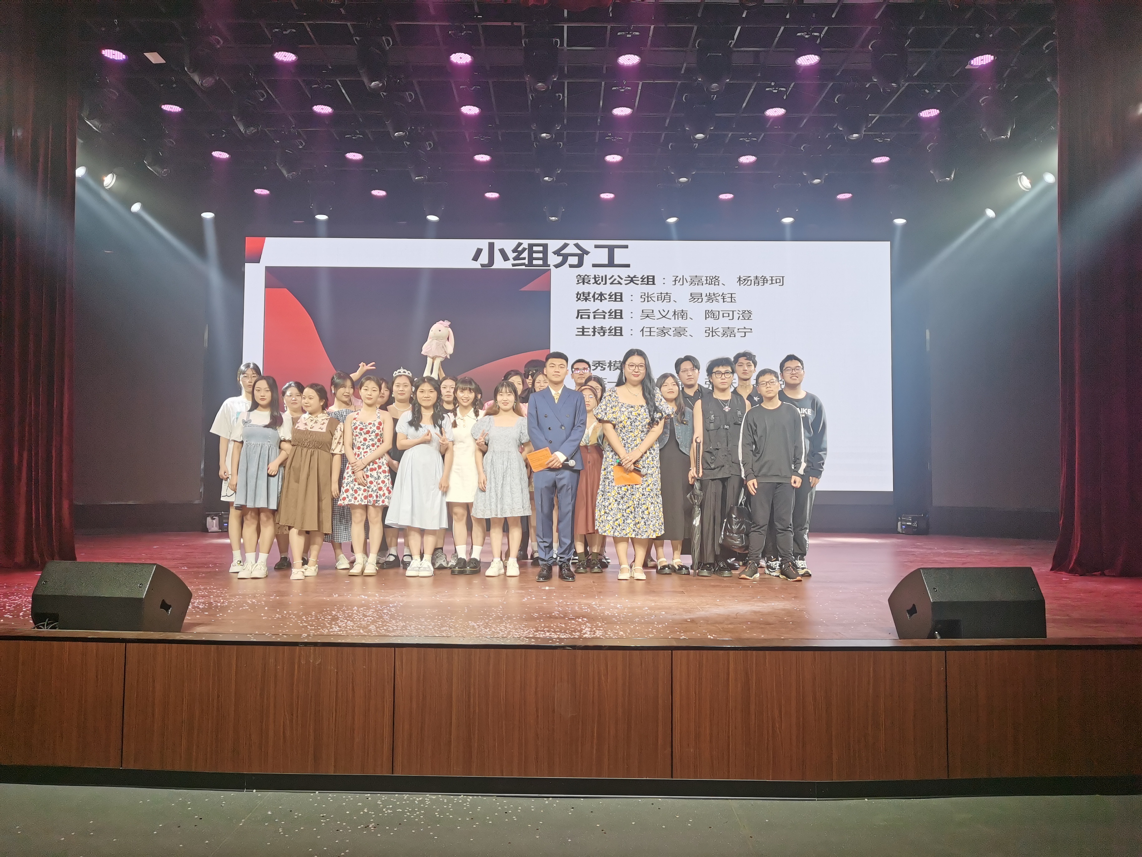 汇报演出现场,精彩连连笑声不断,称得上是一场技能文化视听盛宴。汉语言文学专业凭借其丰厚的文本资源,在讲授基础理论的同时,教师会鼓励学生将本课程的经典篇目改编成话剧,并排演。21汉语言班完美演绎了由《杜十娘怒沉百宝箱》改编的古典舞台剧。冯梦龙笔下的杜十娘,美丽、多情、刚烈又坚定,结局却令人悲叹不已。十娘的悲剧是个人的悲剧,也是整个时代的悲剧。同学们以现代人的视角重新改编、演绎,杜十娘最终还是悲切地举起了百宝箱,她在痛斥时代、李甲之余,自身却有了新的力量。学生在参与经典篇目排演的同时,其积极研读原著的兴趣也被调动了起来。公关理论与实务课程通过情景模拟的方式,让学生亲身参与实际的公共关系专题实践工作,提高学生的实践能力和专业素养。学生分组表演了“赏悦”新品发布会和婚庆典礼策划。发布会上,同学们以流动的色彩表达当代大学生的不同侧面,展现当代年轻人的包容与活力、奋斗与激情、严谨与秩序等。婚庆典礼则集创意与文化为一体,从主持词到各种发言,诗词名句不断。从活动策划书的写作,到背景视频剪辑再到各种文字资料的写作、舞台表演,学生们将专业课程知识综合运用,内化于心,外化于行。