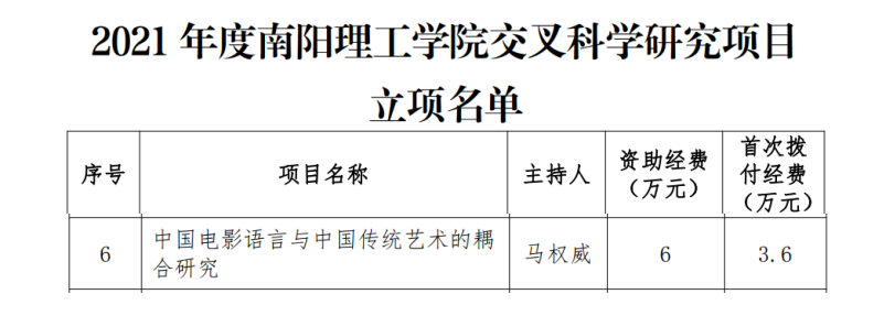 关于公布 2021 年度南阳理工学院交叉科学研究项目立项的通知
