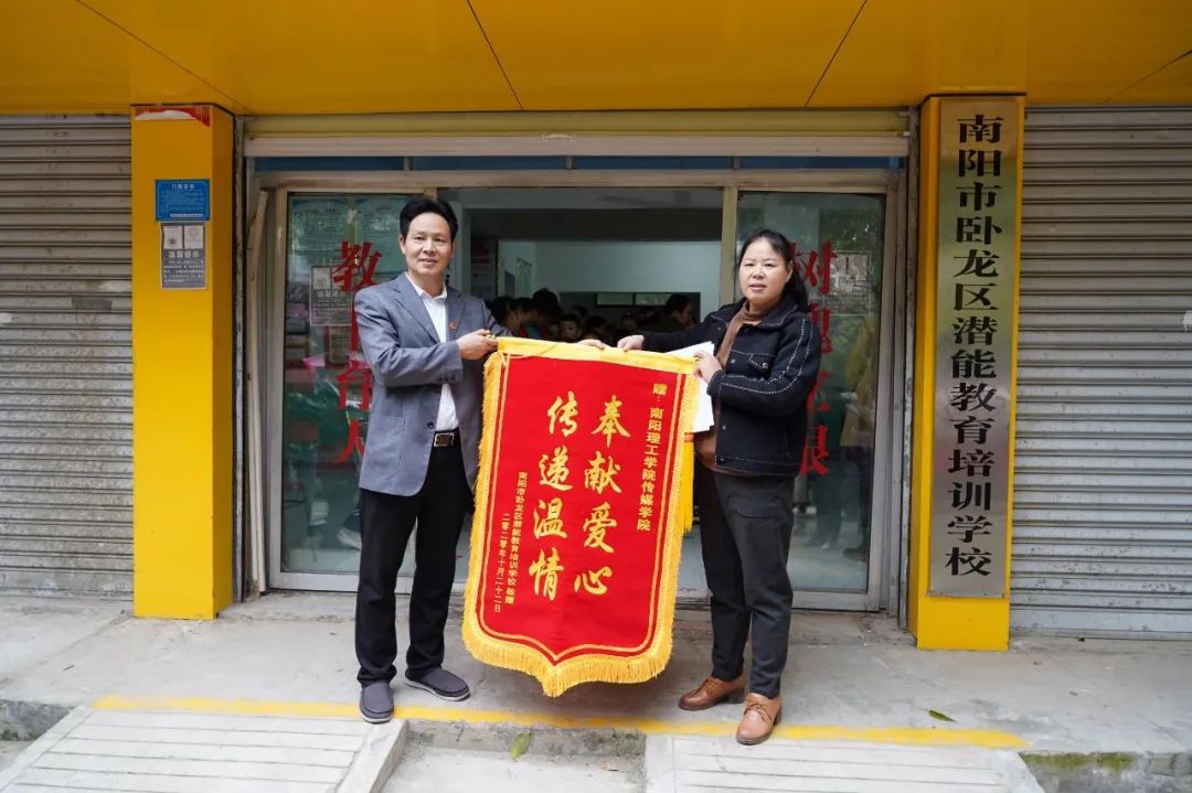 最后,我院党员志愿服务队给每个孩子赠送了礼物。戴校长代表孩子们对大家表示感激,赠予我院一面锦旗。