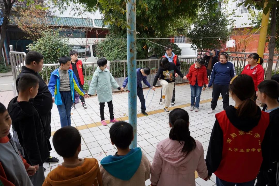 我院老师们在课堂上和孩子们亲切交流,同学们配合老师和自闭儿童沟通。他们拿着玩具与孩子们一起玩耍,耐心地回答孩子们的问题。经过沟通,孩子们打开了心扉,与我院同学在操场上做起了游戏。