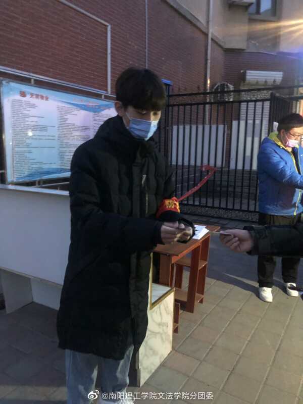 吴征同学在得知南阳市的疫情严峻情况之后,积极参加了疫情防护工作。吴征同学踊跃参加社区的各项志愿活动,每天都会去问各家各户人员的身体情况和流动情况,并进行详细的登记。