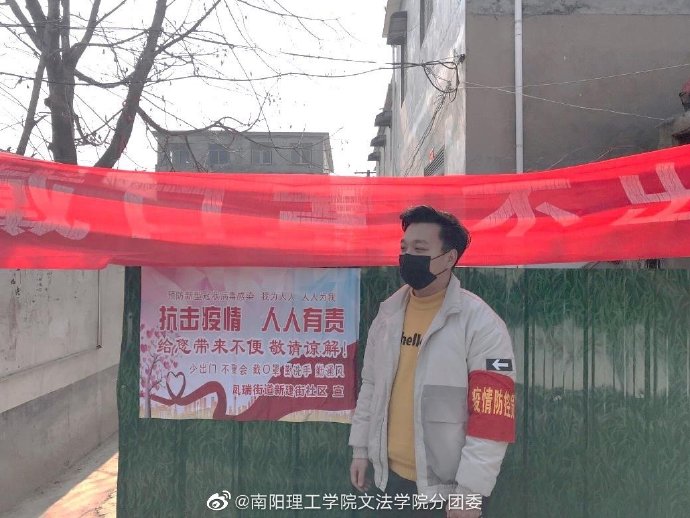 截至2020年2月2日,南阳市确诊新型冠状病毒肺炎已经有六十二例。数字一天天增加,人们的心的随之揪了起来,物资告急,工作人员人手不够的情况日渐突出,在这样千钧一发危机的时候,文法学院17级播音二班包明明挺身而出,参与了方城县凤瑞街道新建街社区新型冠状病毒防控疫情普查、新型冠状病毒预防宣传以及新型冠状病毒防控站岗工作。