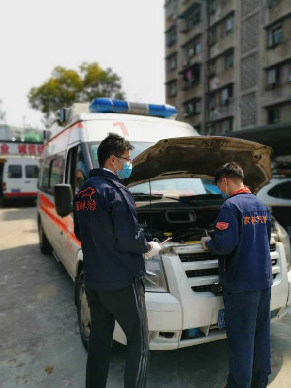 (图为周路航在协助维修救护车辆)