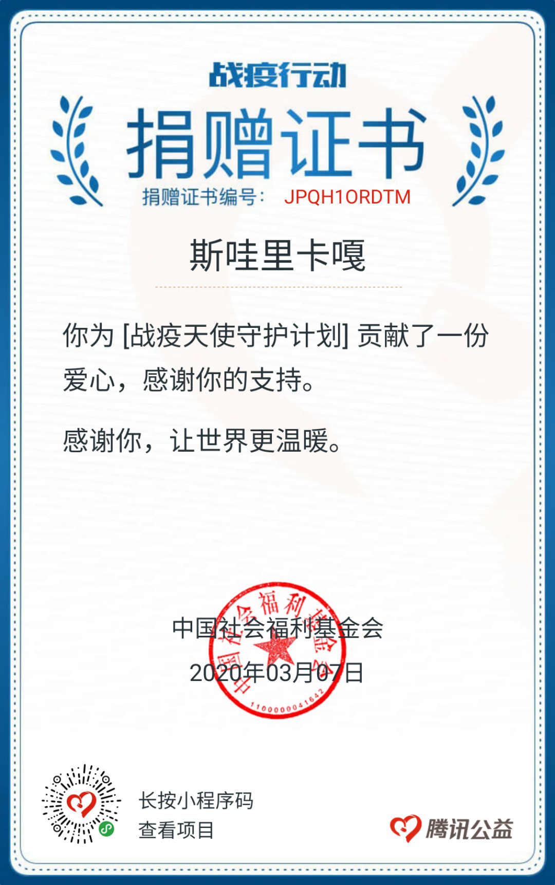 (图二为赵福辰的捐款证明)