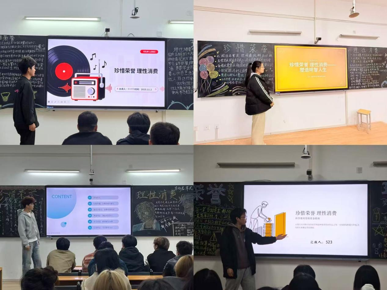 班会最后,各班负责人提出几点建议:树立正确价值观,不盲目跟风,让消费回归满足需求的本质;坚持量入为出原则,拒绝超前消费与过度消费;珍惜个人与集体荣誉,以正向消费行为展现青年责任与担当;主动识别消费陷阱,提高自我保护意识,守护自身权益与声誉。