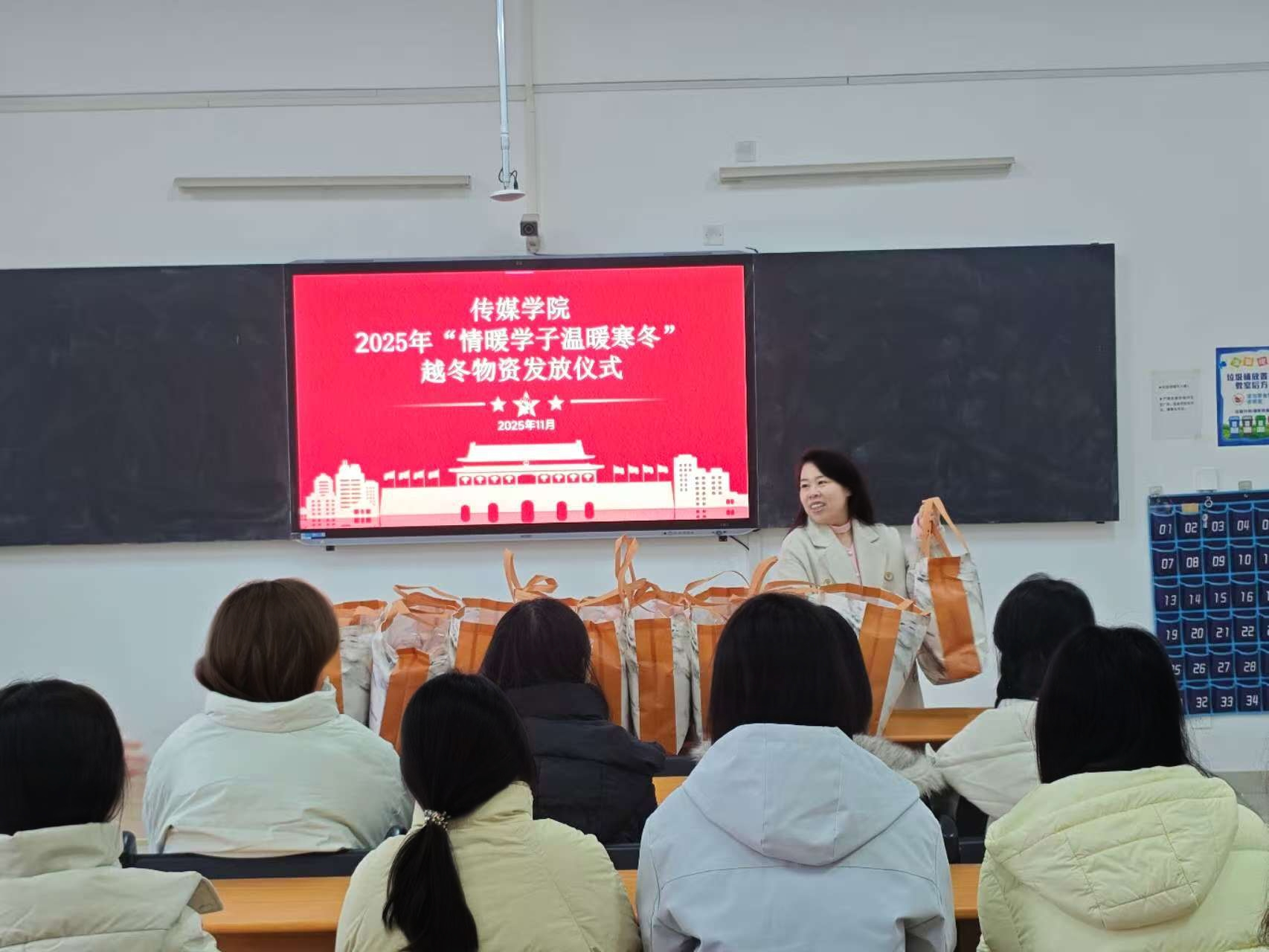 为落实国家资助政策,提升资助教育实效,11月17日,传媒学院于20教409举办2025年“情暖学子,温暖寒冬”越冬物资发放仪式。学院党委副书记杨双、资助专干老师马孟涵出席,受资助学生参加。