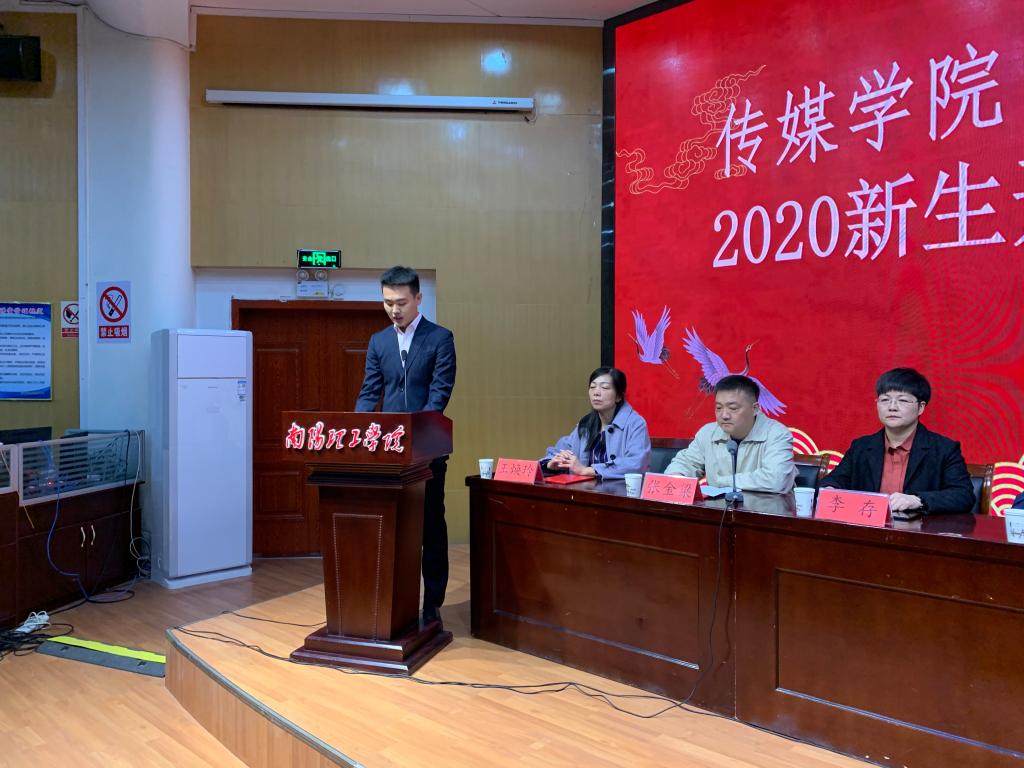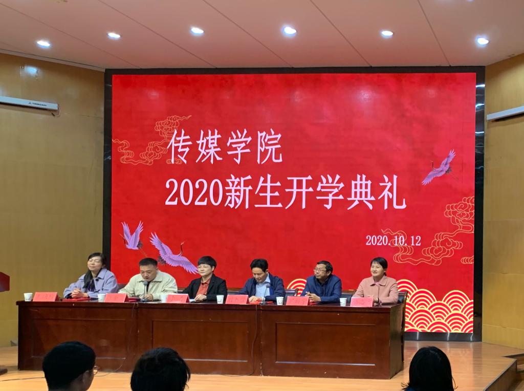 10月12日晚7点,传媒学院在领创空间报告厅举办“20级新生开学典礼”和“新生教育第一讲”讲座,传媒学院院长李存、党委书记刘书营、党委副书记张金梁、副院长王焕玲、副院长罗新宇、副院长骆志方出席,张书记主持会议。