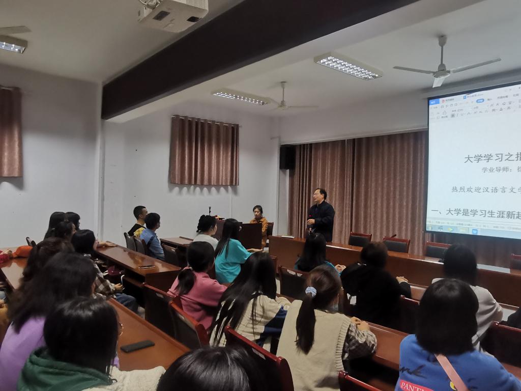 在此期间,汉语言班的学业导师首先介绍了汉语言文学在今后要如何去学和学什么,再其次,徐云浩老师给汉语言班的同学们定了班规,班训,以及班级之家的训歌,更是拉进了之间的情感!