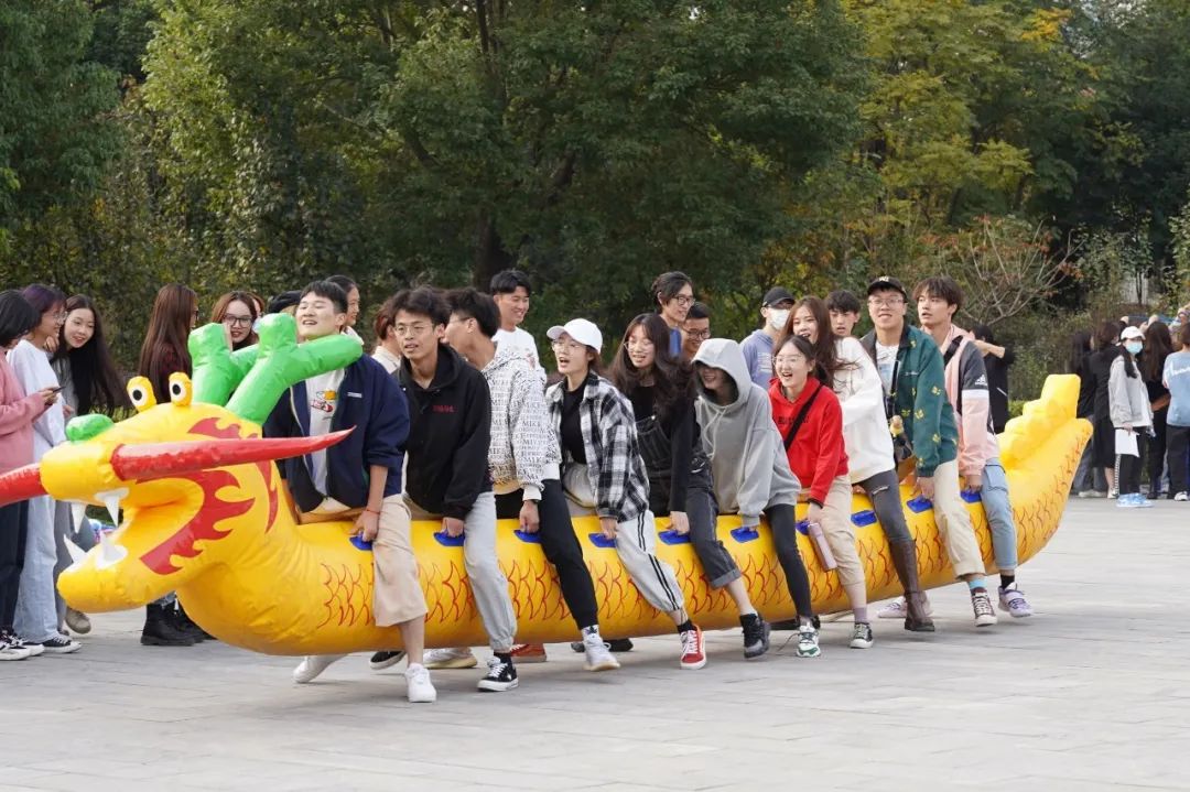 本次心理趣味素拓活动分为“旱地龙舟”、“神笔马良”、“合力建塔”和“鼓动奇迹”四个项目。活动现场,气氛紧张而热烈,同学们的欢呼声、呐喊声、响彻天际。参赛同学时而严肃、时而活泼,时而紧张、时而欢呼,一声声呐喊助威声彰显了同学们的团结一致和必胜的信念。