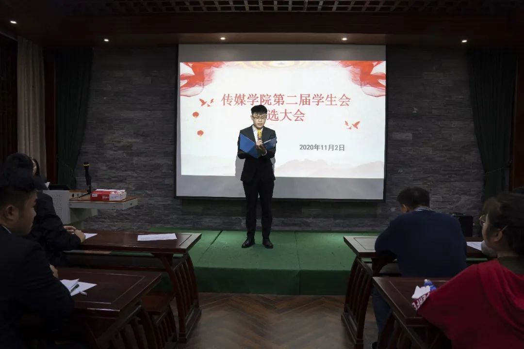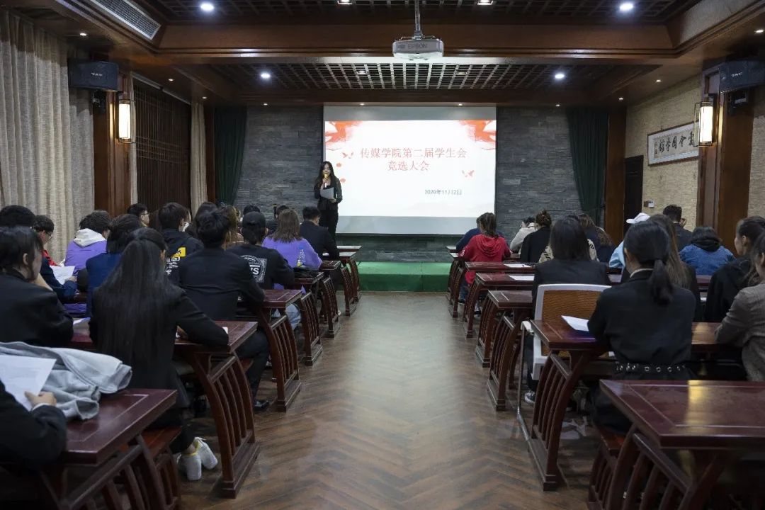 11月2日晚,我院于十教国学教室举行第二届学生会竞选仪式。出席本次仪式的有党委副书记张金梁、团学办公室主任郑丹丹,以及传媒学院第一届学生会主席、部长们。本次竞选仪式由薛森泳主持。