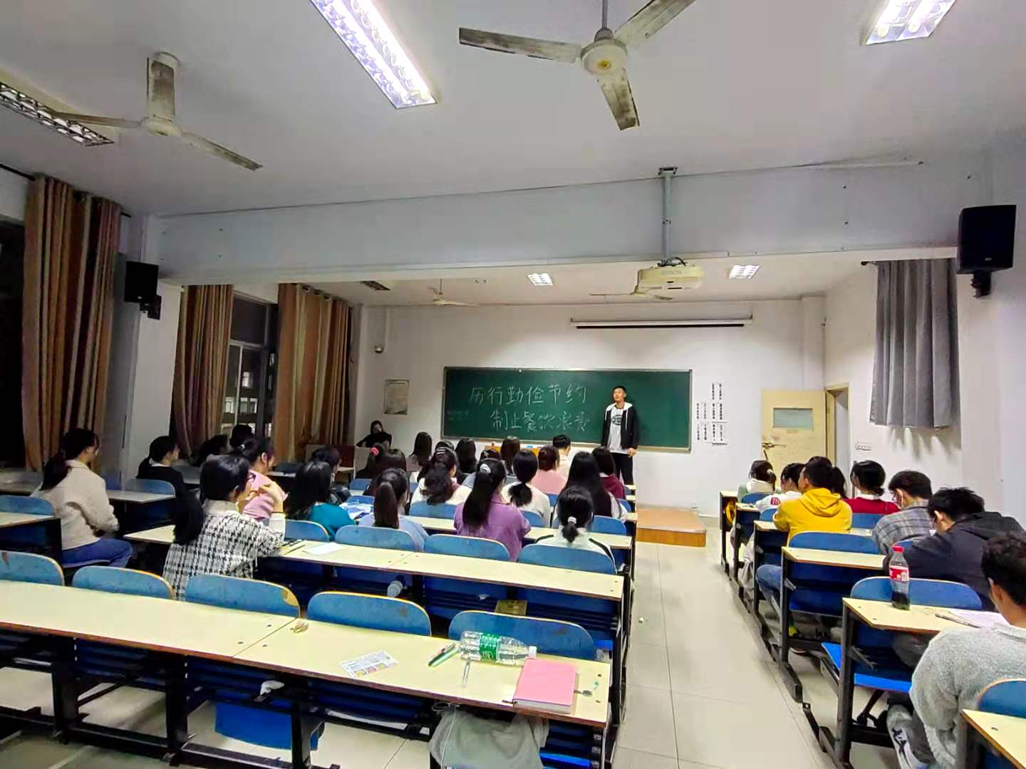 团日活动中,我院组织各班团支书召开座谈会,讲述发生在自己身边的勤俭节约小故事,以轻松的方式传递勤俭节约精神,时刻牢记“勤俭节约”。