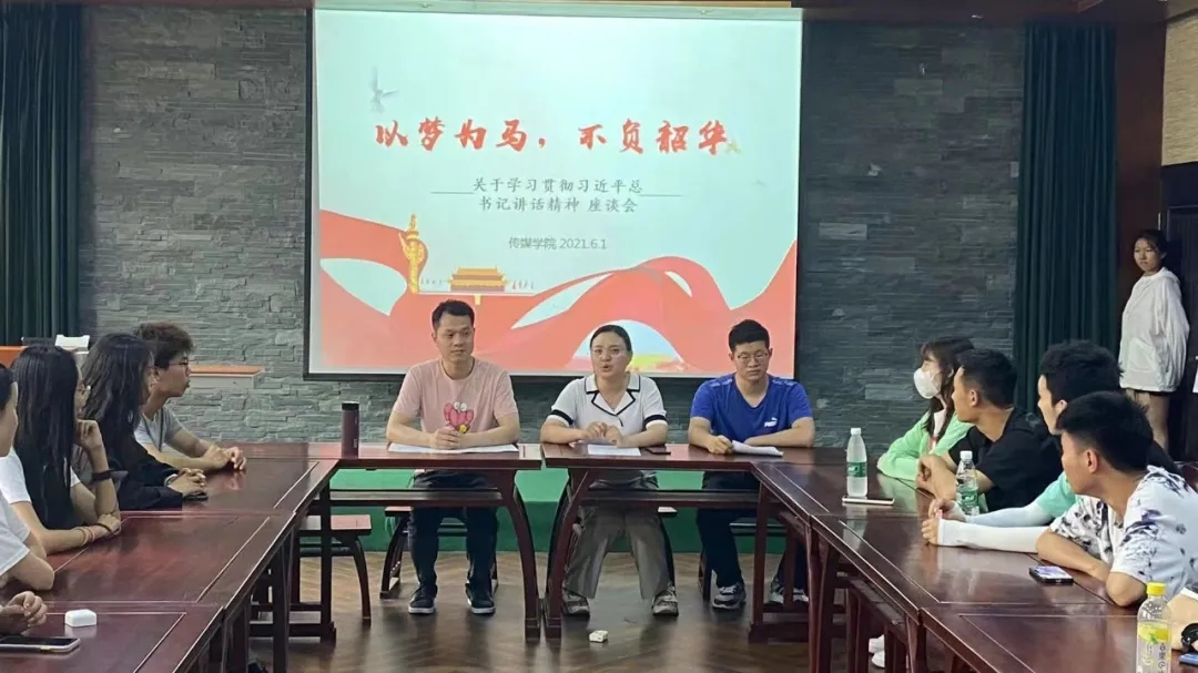 本次座谈会不仅深入学习了习近平的重要讲话指示精神,也激励了当代大学生奋发图强,更弘扬了传媒学子以梦为马,不负韶华的励志追梦精神!贯彻时代精神,投身伟大实践,助力伟大中国梦!
