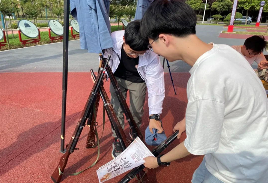 “时光DV”社团成员向同学们展示我院创作的红色短剧,通过现场讲解、播放影视资料,帮助同学们了解党史、了解红色短剧,以创新方式普及党史知识,展示传媒学院独有的风采。在社团成员的引导之下,同学们聚集在法治广场试穿红军服装,并由社团成员拍照留念,留下有意义的瞬间。同时,社团成员还准备了党史答题卷,只要参与答题活动即可获得相应礼品,丰富多彩的形式受到同学们的欢迎。