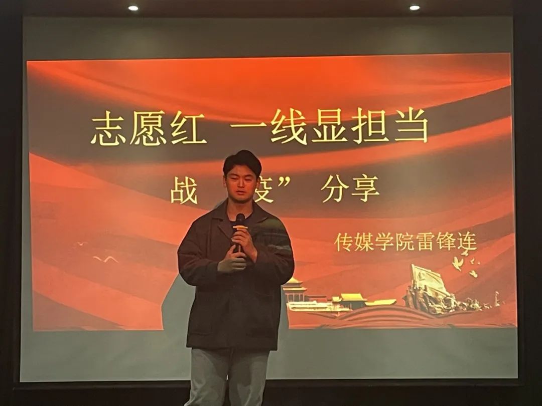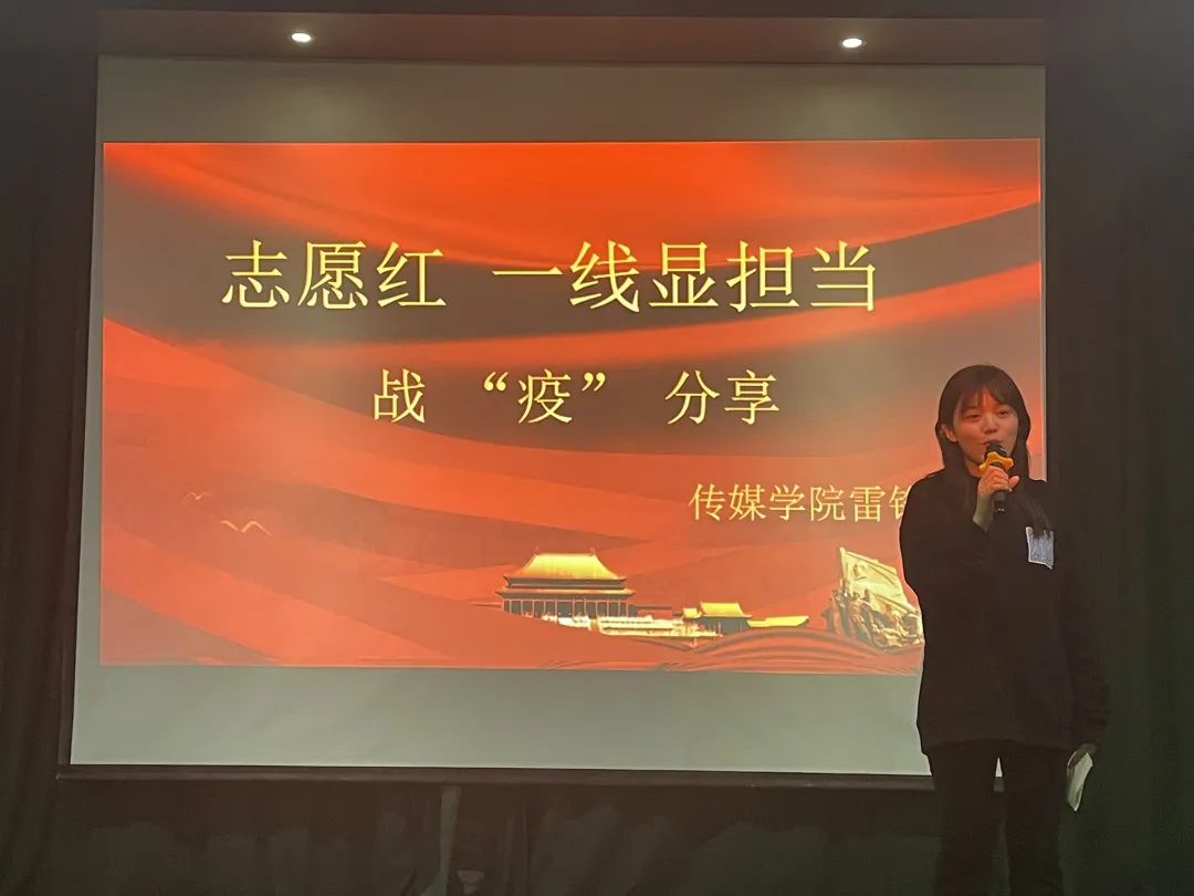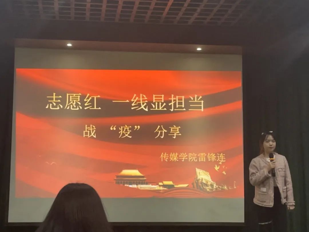 3月28日晚,传媒学院在国学教室开展了“传媒志愿红,一线显担当”故事分享活动。此次活动由雷锋连负责人库富昌主持,播音一班杨彦翔,宋旭和编导班池冰等向同学们分享了假期中自己抗疫的所见所闻所感所思。