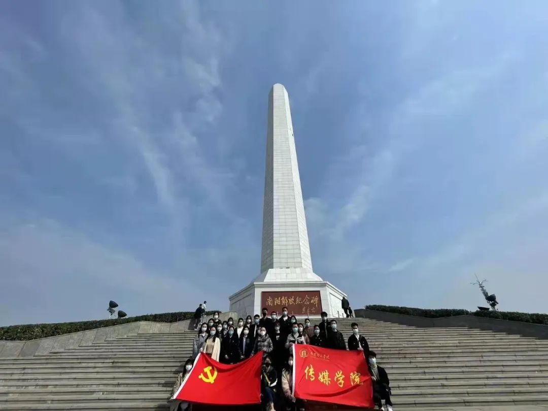 上午十点整,活动正式开始,全体师生在南阳解放纪念碑前肃立,郑丹丹老师向大家介绍此次活动的目的,教导大家要怀着对先烈的崇敬之情,珍惜当下的美好生活。王芯蕊、王森浩、马俣哲三位学生代表进行诗词朗诵,师生们怀着对先烈无比崇敬的心情,肃然有序地在纪念碑前献花并默哀。最后,在铿锵有力的入党誓词中,全体师生表达出对革命烈士的无限感恩与怀念。