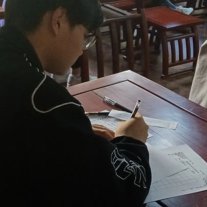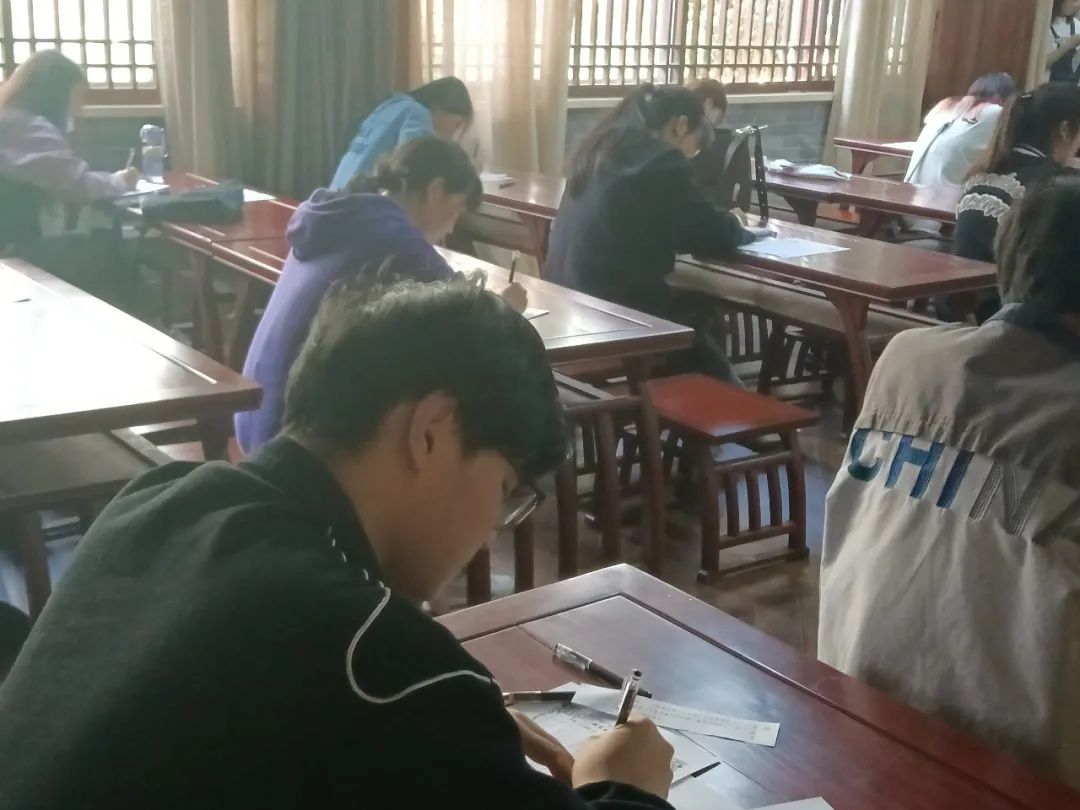 下午,相关负责人提前到场布置场地,准备好参赛所需纸墨等工具,参赛的同学们跃跃欲试、热情高涨,比赛持续多个小时,同学们耐心创作积极向上的书法作品,充分展现了当代大学生的风采。