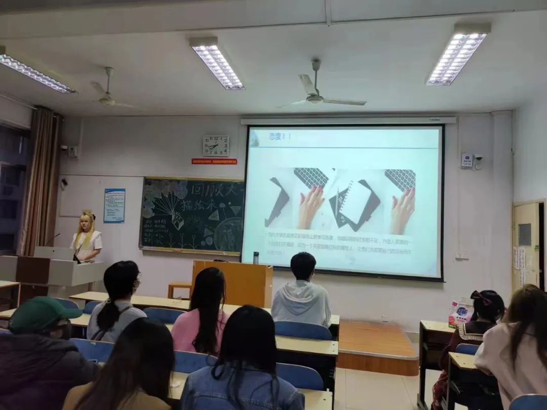 5月15日晚七点,我院各班在10教举行了主题为“回顾大一心路历程,描绘未来理想蓝图”的主题班会。班会主持人针对同学们大一遇到的心理困惑,就PPT内容提出了相应的建议。班会形式多样,穿插多样化的视频,辅之以主持人声情并茂地讲解,更增强班会的趣味性与互动性。