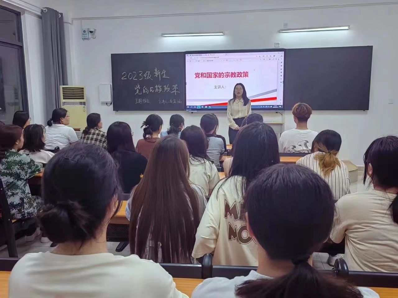 2023年9月,23级导员马孟涵组织我院新生在各班自习室召开宗教政策普及主题班会,旨在深入贯彻落实党的宗教工作方针政策,切实加强中国特色社会主义民族宗教理论、党的民族宗教政策和国家有关法律法规的宣传教育,引导大学生崇尚科学,树立正确的宗教观,提高学生正确认识和对待宗教问题的能力。