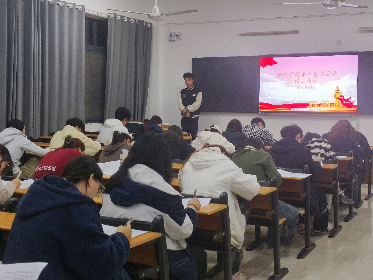 为深入学习贯彻习近平新时代中国特色社会主义思想,强化入团积极分子理论水平与政治素养。我院团委于11月11日晚6:30在传媒学院20教408举行第五期团课结业考试。