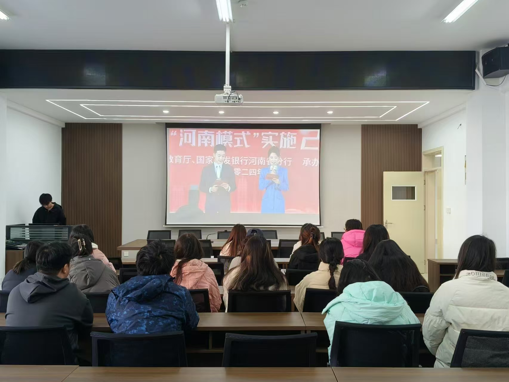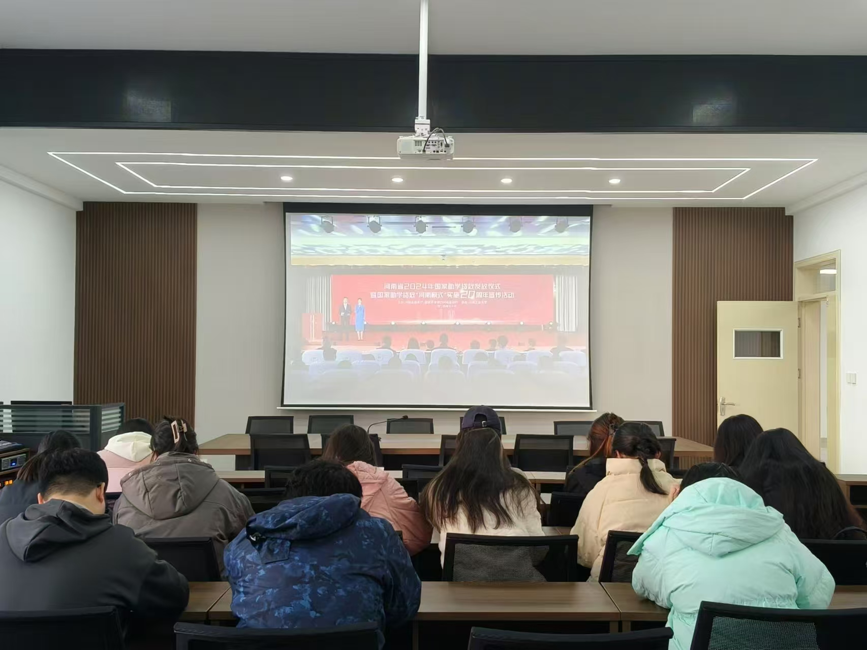 为深入贯彻落实国家资助政策,加强资助育人成效,传媒学院于11月27日积极组织师生在20号教学楼会议室观看河南省 2024 年助学贷款发放仪式暨国家助学贷款“河南模式”政策实施 20 周年宣传活动。