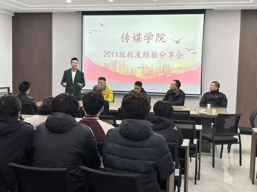 10月27日下午,传媒学院2011级校友南鑫文、王大伟等5人回校参加毕业十周年纪念活动。学院党委书记刘书营、副院长王玉良以及相关教师和学生代表出席活动。学院党委书记刘书营对校友们的返校表示热烈欢迎,对校友们在各自领域取得的成就表示肯定,同时希望校友们能持续关注母校发展,为学院建设建言献策。
