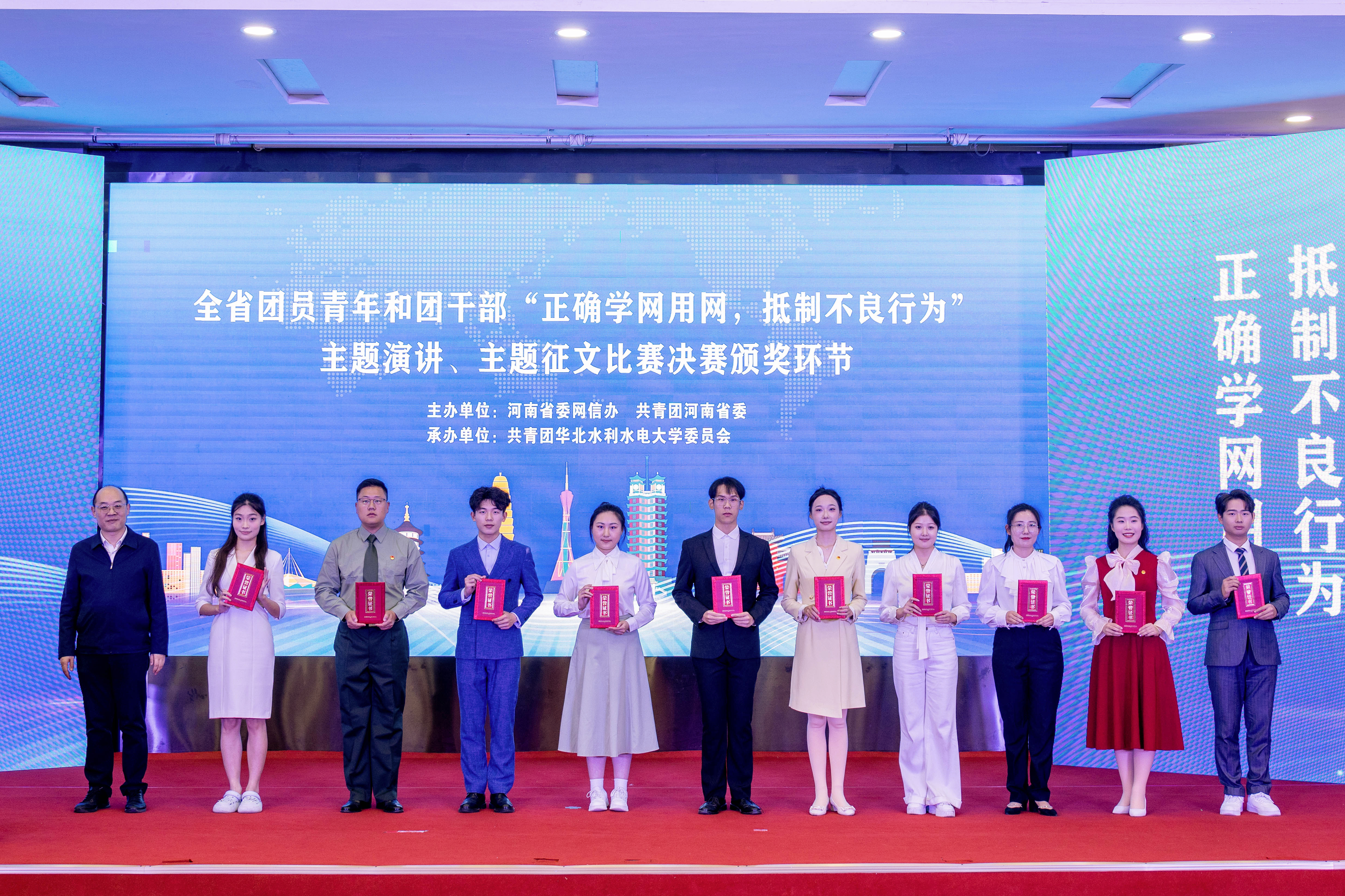 本网讯(特约记者/阿如汗)11月13日,由省委网信办、团省委共同主办,华北水利水电大学团委承办的全省团员青年和团干部“正确学网用网,抵制不良行为”主题演讲、主题征文比赛决赛在郑州落下帷幕,我院播音与主持艺术专业2025级学生刘朗荣获二等奖。