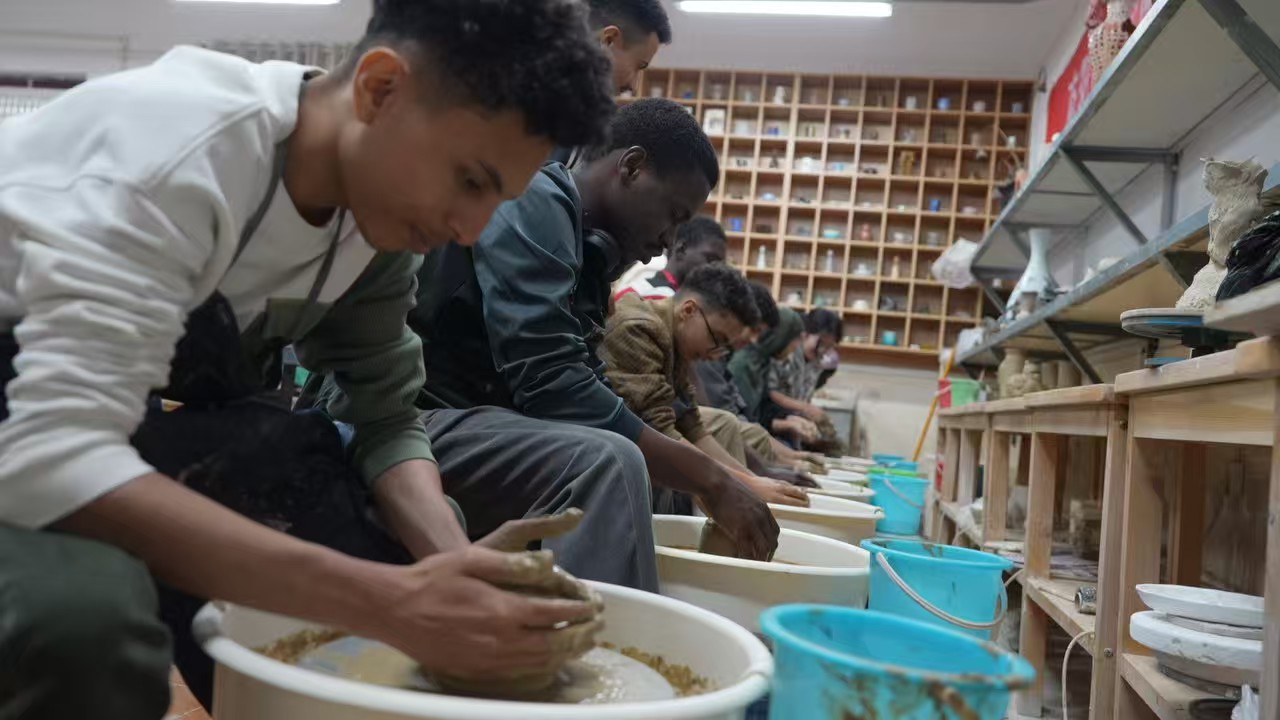 进入实操环节,同学们分组动手尝试,大家充分释放想象力,有的模仿老师示范制作传统器型,有的大胆创新融入自身文化元素,在揉、盘、捏、塑间,感受手工陶艺的温度与创作的乐趣。整个过程,陶艺老师逐一指导,纠正手法偏差,还鼓励留学生融入本国文化元素,让作品成为“中外文化融合的小载体”。