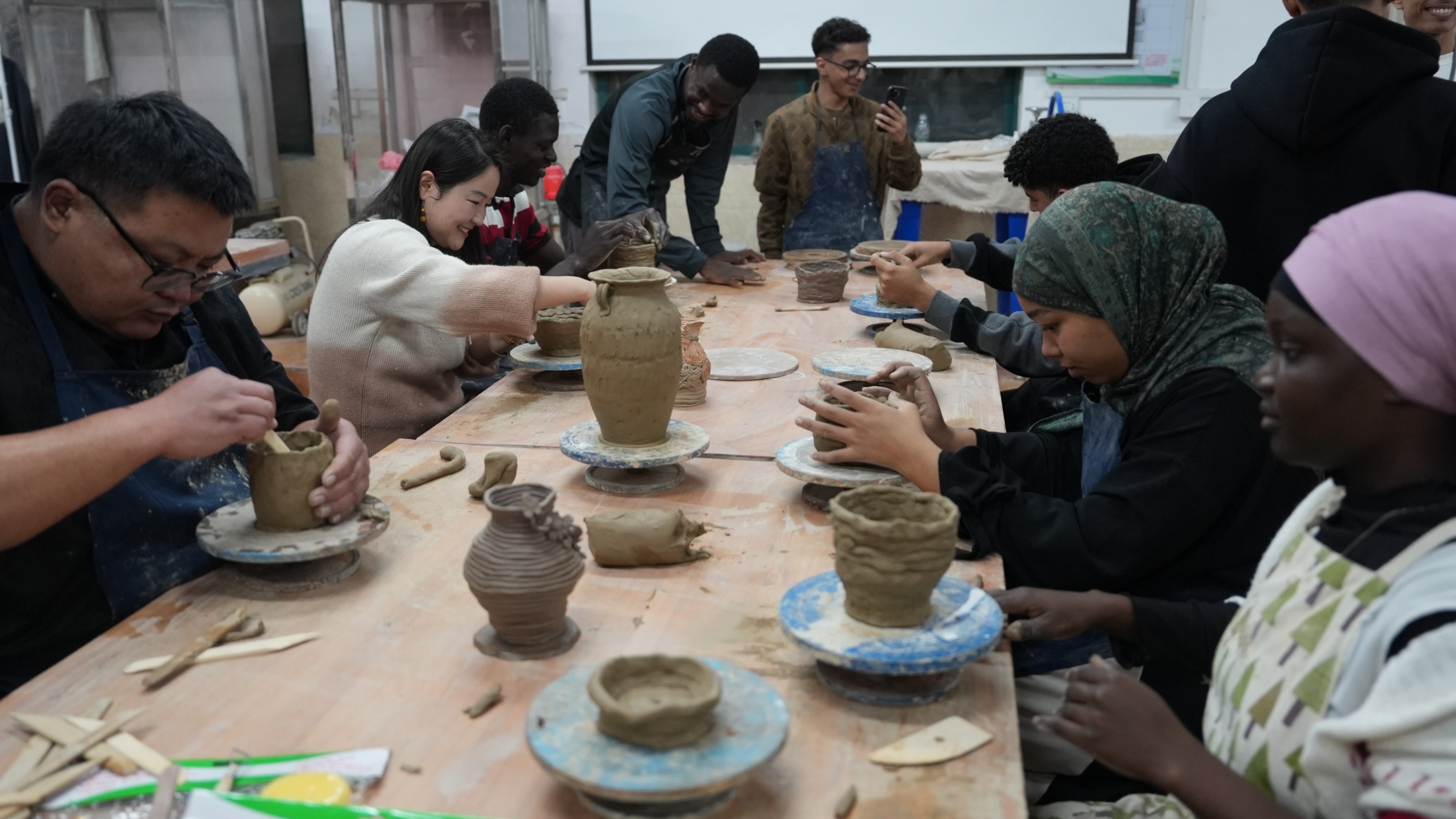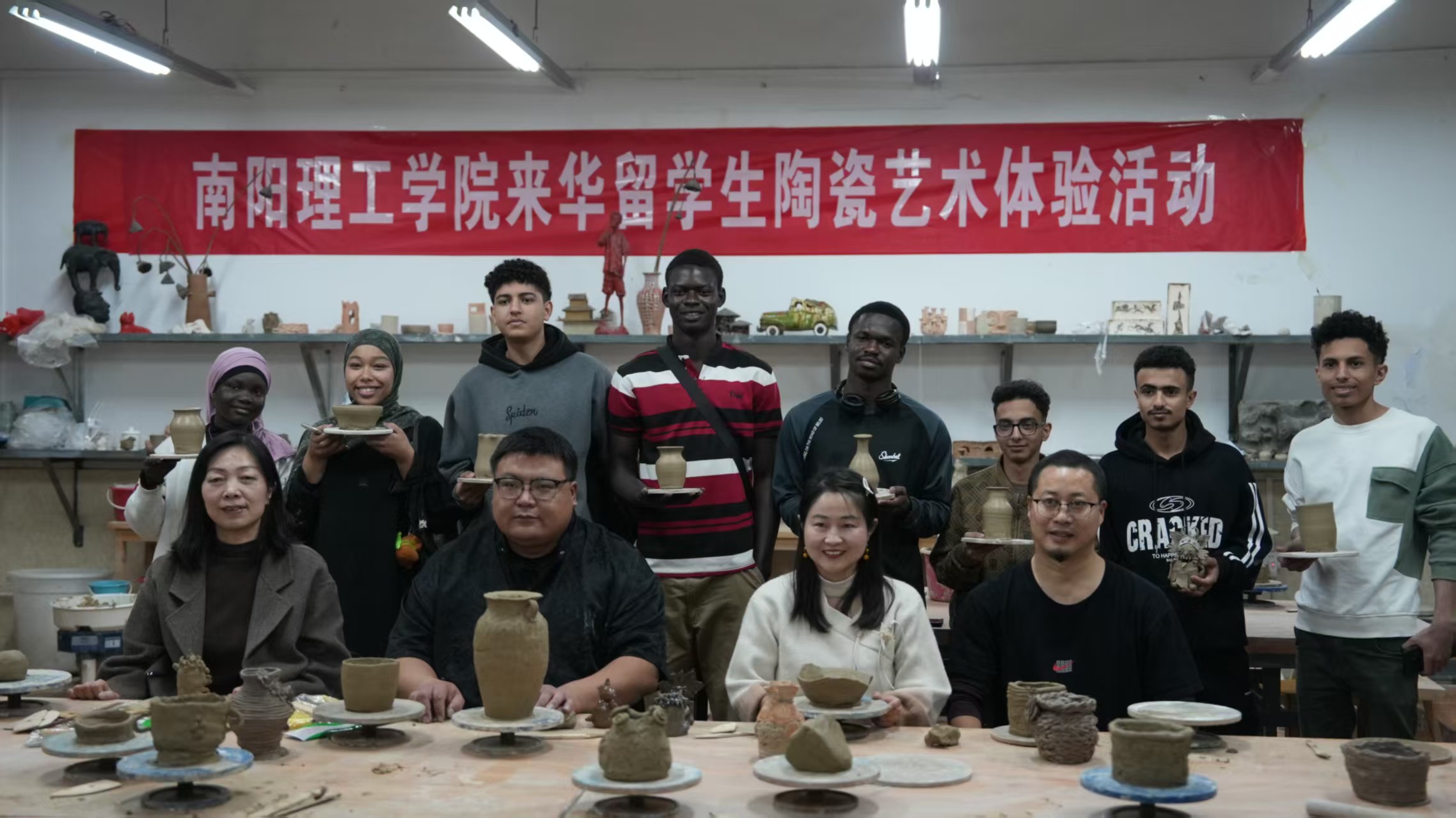 近四个小时的体验课结束后,留学生们捧着自己的“处女作”合影留念。布基纳法索留学生彦宁表示:“课程很有趣,我很开心。亲手做的陶艺花瓶,虽然不够完美,但很有意义,使我感受到了中国文化的细腻与包容。”