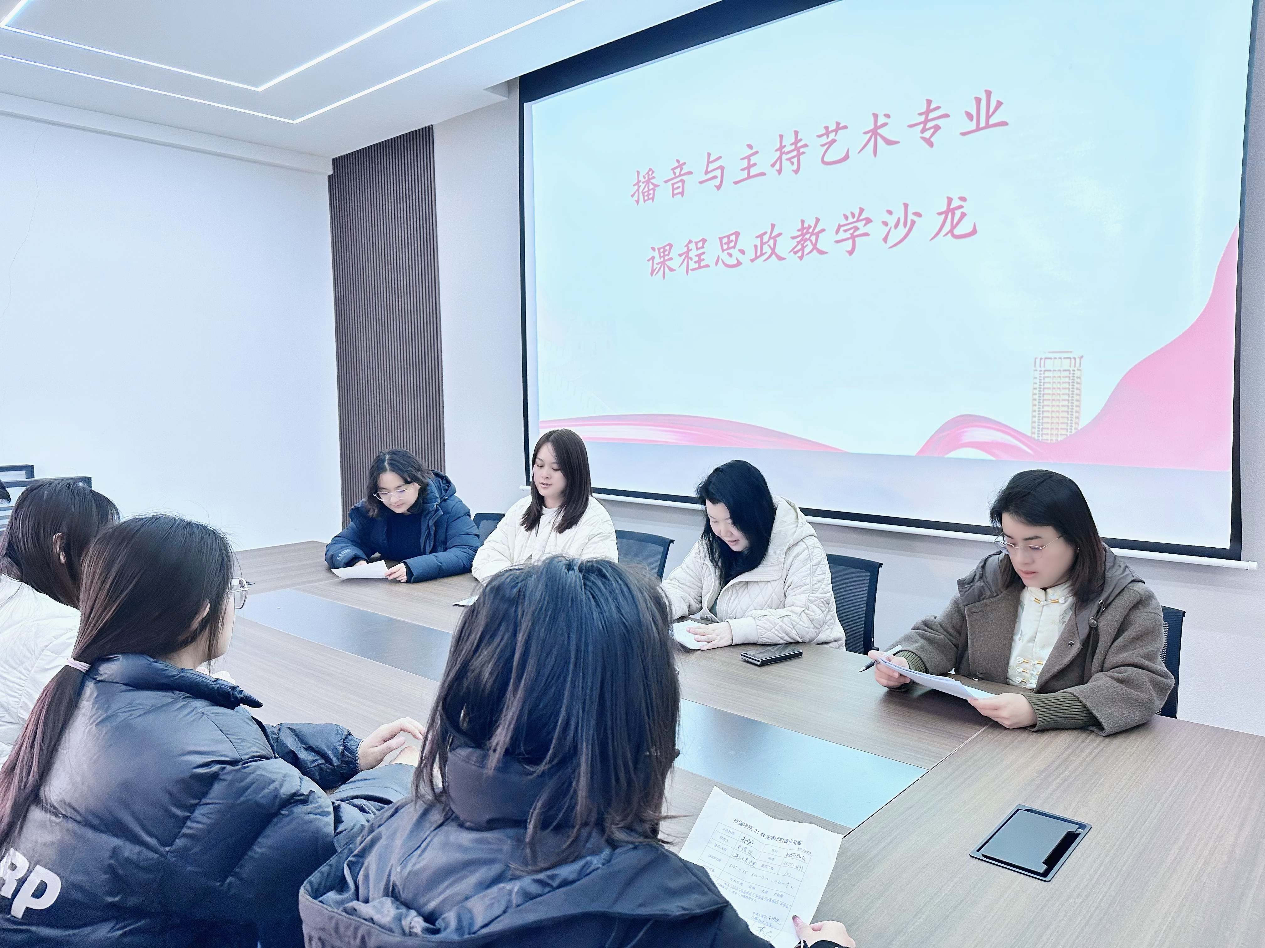 本网讯(特约记者/吴倩倩)为深入贯彻落实教育部《高等学校课程思政建设指导纲要》,依据《传媒学院2025年课程思政活动月实施方案》,11月11日下午,播音与主持艺术专业在学院会议室举办了以“AI赋能课程思政教学”为主题的教学沙龙。本次活动由教研室组织,全体播音与主持艺术专业教师参加,学院相关领导出席指导。