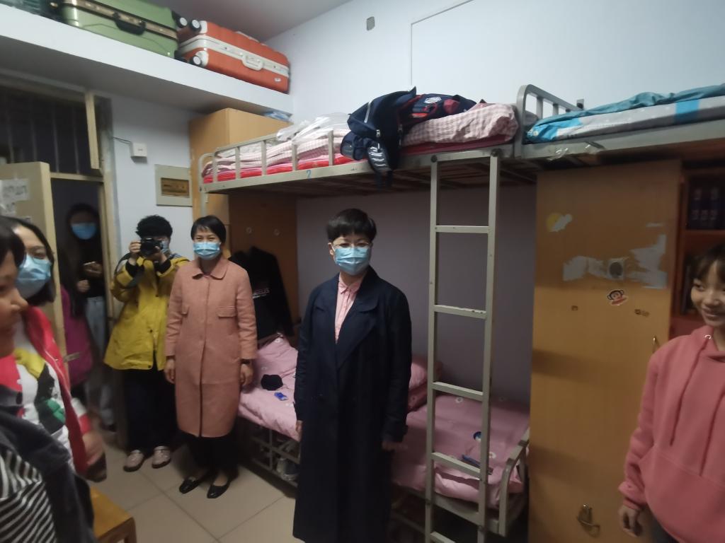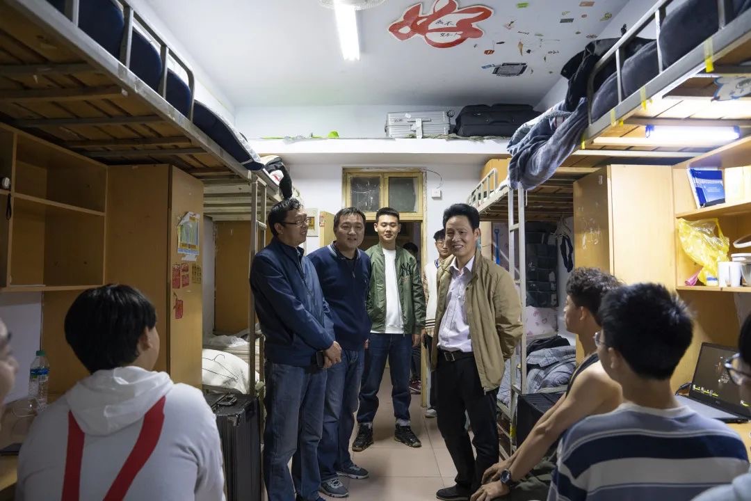 在宿舍里,看到学院领导前来慰问走访,2020级新生们也都表现积极,阳光向上,主动向老师们示意问好,并告诉自身有关基本情况。