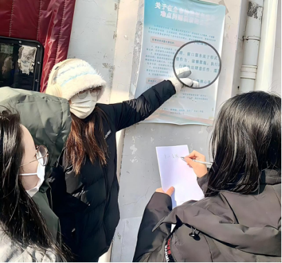 本次活动覆盖校园广场、教学楼、图书馆等核心区域,学生以小组分工协作的方式展开实践。“文字巡检员”小组实地巡查各类宣传标语、公告栏文本,重点排查常见用字错误;“文字解读员”小组聚焦校园规范标语,溯源词语本义与文化渊源,深挖文字背后的文化内涵。