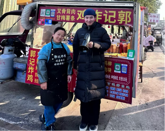 在熟食店、烧烤摊、水果店、饮品车与炸鸡铺等一个个市井摊位前,同学们手持喊话器,化身“街头配音员”,展开了一场与专业紧密结合的劳动实践。大家结合摊贩经营特色,从广告文案的生活化创作,到语音语调的场景化适配,再到情感表达的细节化打磨,每一个环节都应用学校所学的专业知识,亲力亲为、用心琢磨。水果摊摊主感慨道:“孩子们用专业帮我们吆喝,既新鲜又管用,真是帮了我们大忙!”