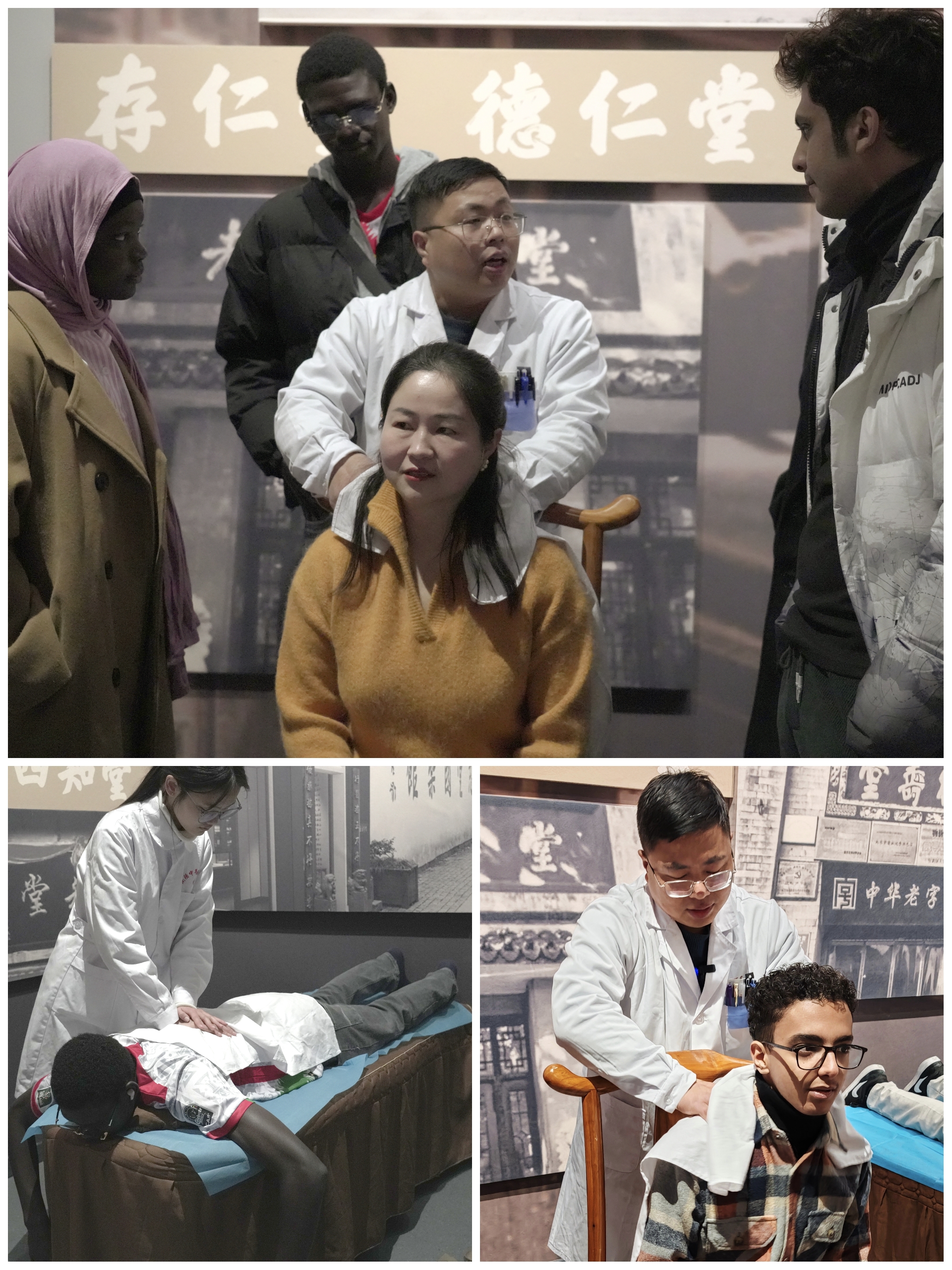 参观结束后,为让留学生们更直观地感受中医药的诊疗魅力,文化园工作人员特意安排了中医推拿、针灸体验活动。专业医师根据留学生们的身体状况,提供了针对性的推拿服务,并详细讲解了针灸、推拿的养生原理。来自布基纳法索的留学生彦宁体验完推拿后,兴奋地说:“之前只在书本上了解过中医药,今天不仅听到了张仲景的传奇故事,还亲身感受了中医推拿的神奇效果,肌肉的酸痛感缓解了很多。中医药文化真的太博大精深了,这次体验让我对中国传统文化有了更深的喜爱。”