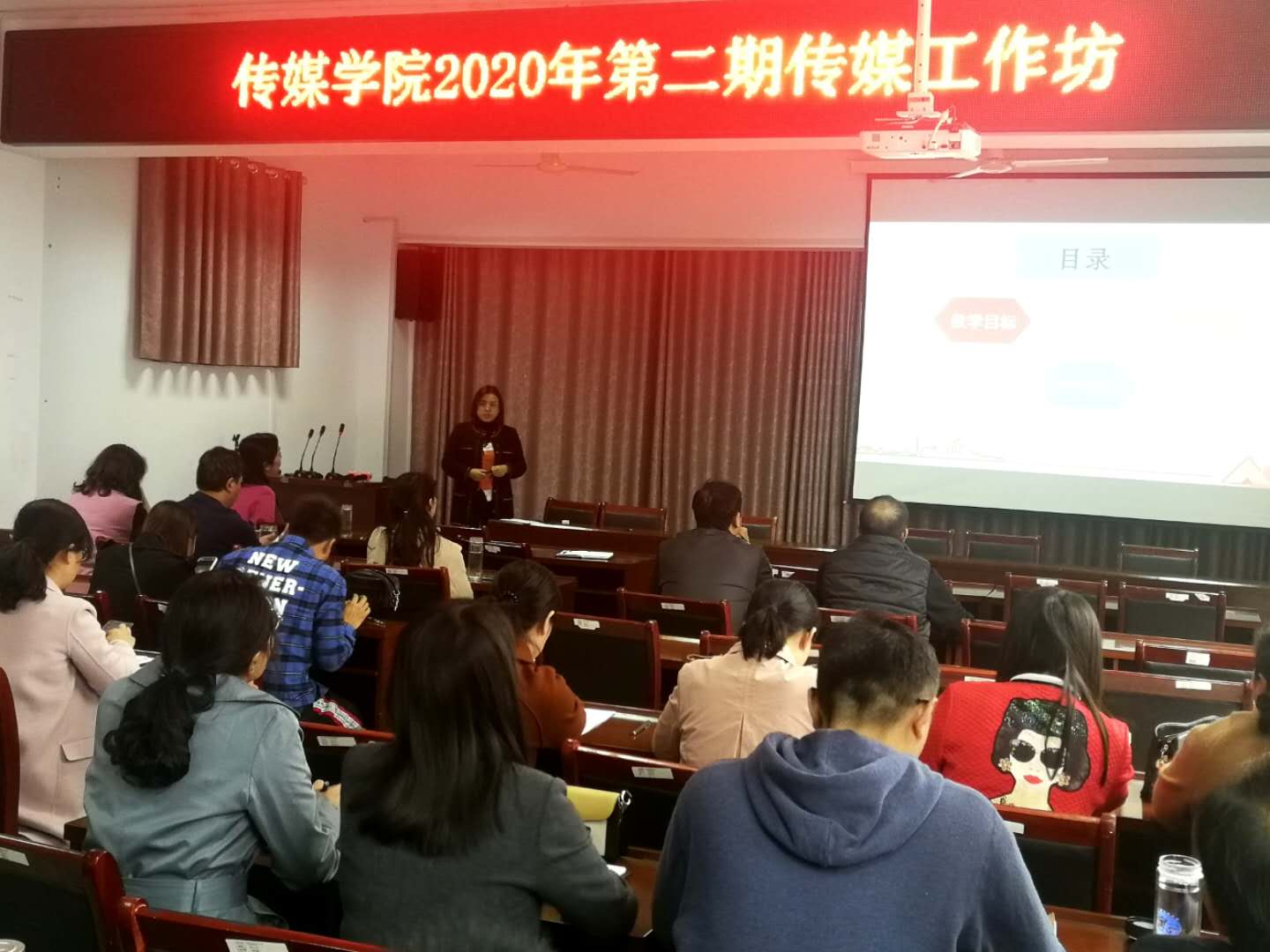 本期传媒工作坊的主题为“课堂教学——模式创新与质量提升”。陈硕老师结合自己参加2018年河南省本科高校青年教师课堂教学创新大赛的经历,分享了自己参加比赛的说课和讲课内容,她灵活地运用翻转课堂法、任务驱动法等教学方法,把学生课堂外和课堂内的学习过程和线上线下的学习过程有机结合起来,取得了非常好的教学效果。陈硕老师从自己的参赛经历和切身感受出发,语言诙谐幽默,内容干货满满。老师们听得津津有味,收获颇丰。