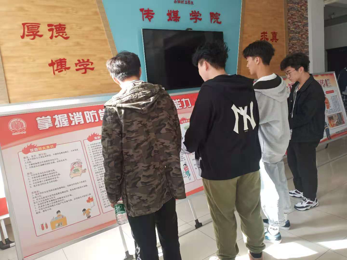 (本网讯/符金燕)临近冬日,天气越来干燥正是火灾多发的季节。11月9日,我院组织开展了消防安全知识宣传教育活动。此活动,专门制作了消防安全知识展板,同学们纷纷的认真观看,还不时的进行交流。
