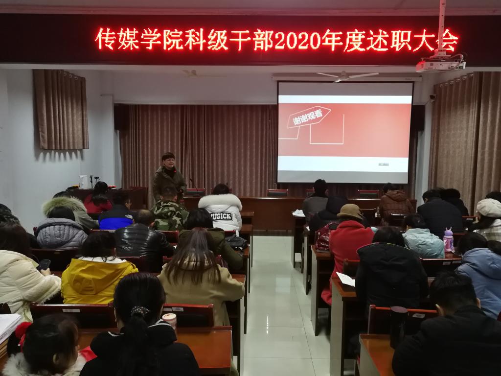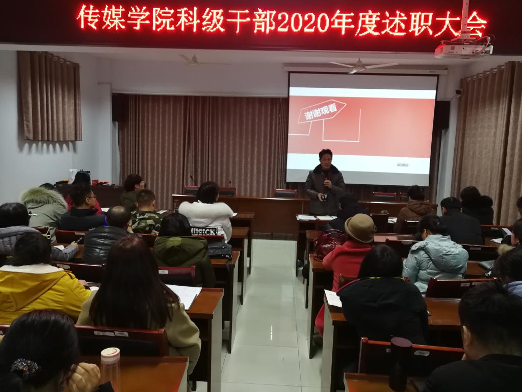 本网讯 (李志光)1月14日下午,传媒学院在会议室举行科级干部2020年述职大会,听取各科室2020年度工作完成情况及2021年工作设想。院长李存、党委书记刘书营等学院领导和全体教职工参加会议。