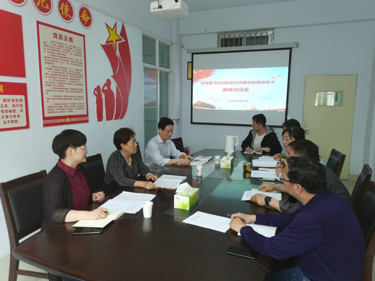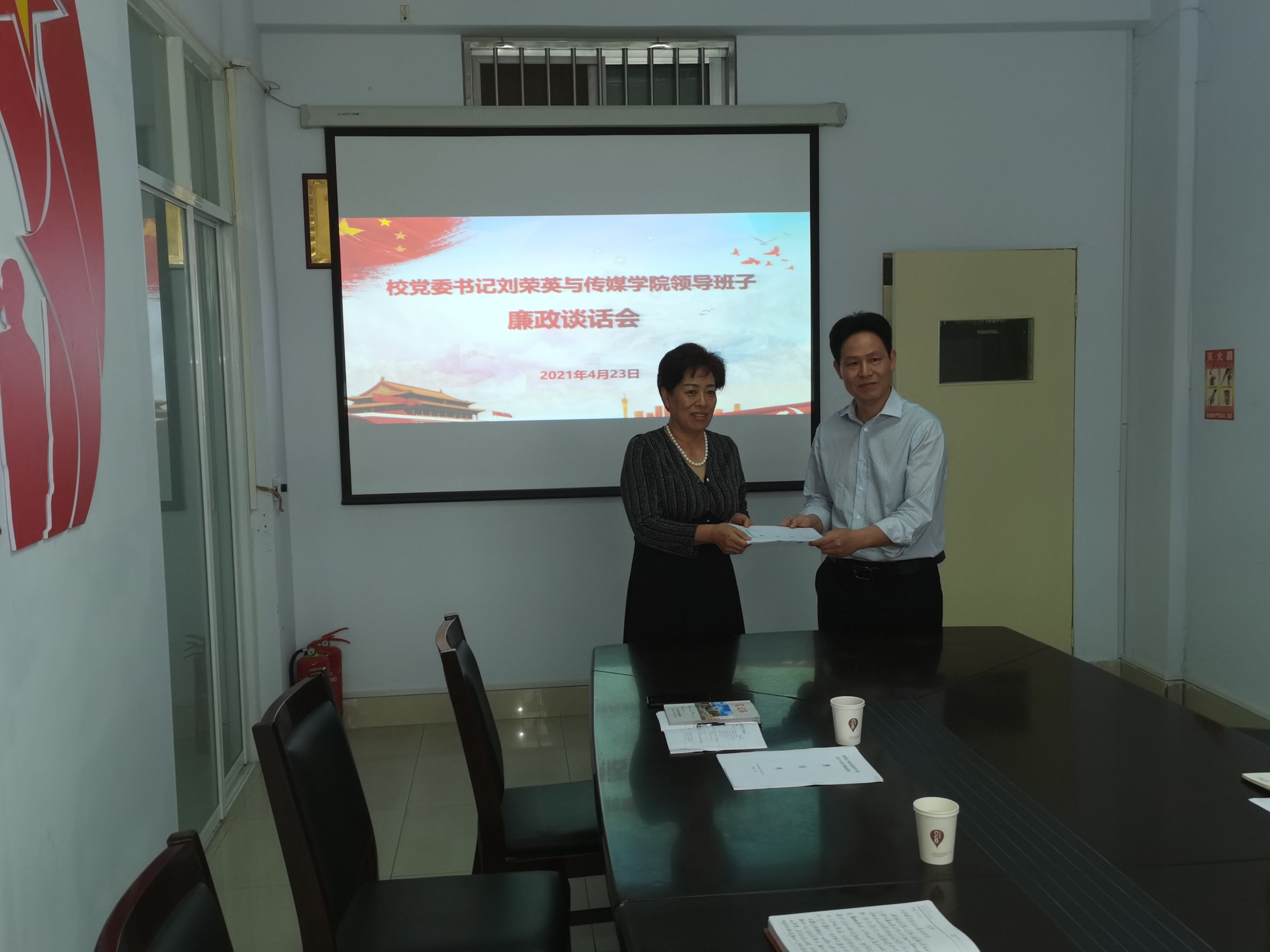 本网讯(特约记者/杨军)根据学校党风廉政建设责任书通知要求,4月23日上午,校党委书记刘荣英对传媒学院领导班子进行集体廉政谈话。