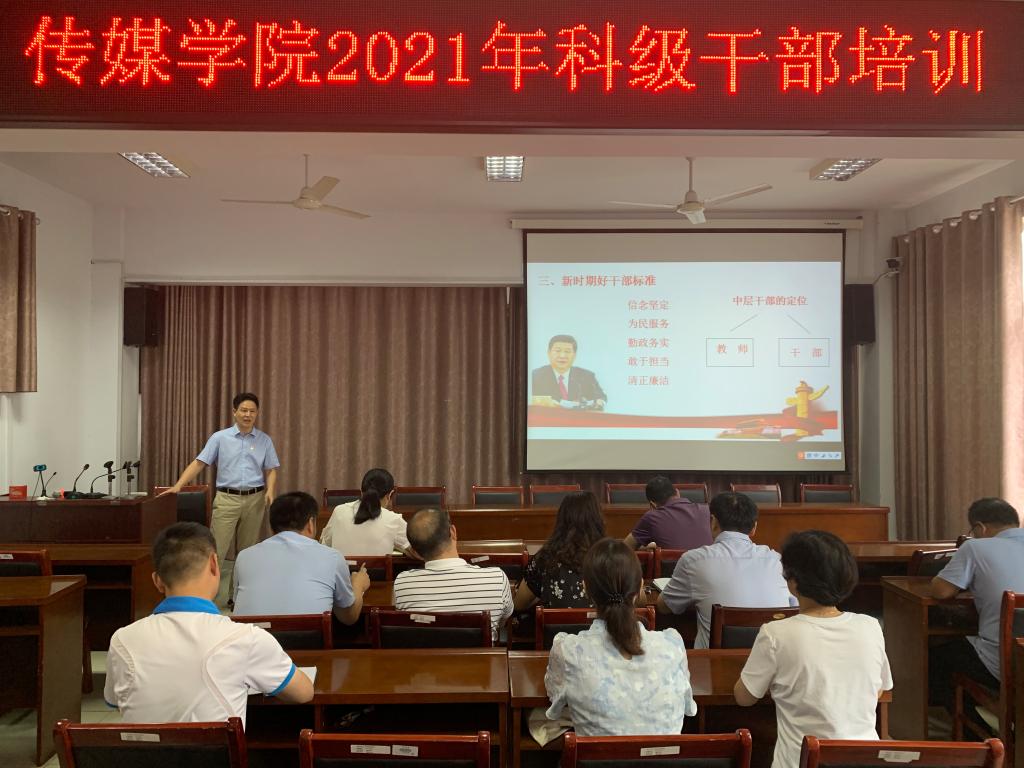 本网讯(特约记者/尹皓冉)7月7日至8日,传媒学院举办科级干部培训班,旨在进一步提升科级干部的思想政治素质,增强科级干部的责任担当意识和开拓创新意识,提高工作执行力和工作效能,更好发挥“兵头将尾”作用。传媒学院领导班子与12名科级干部参加本次培训。
