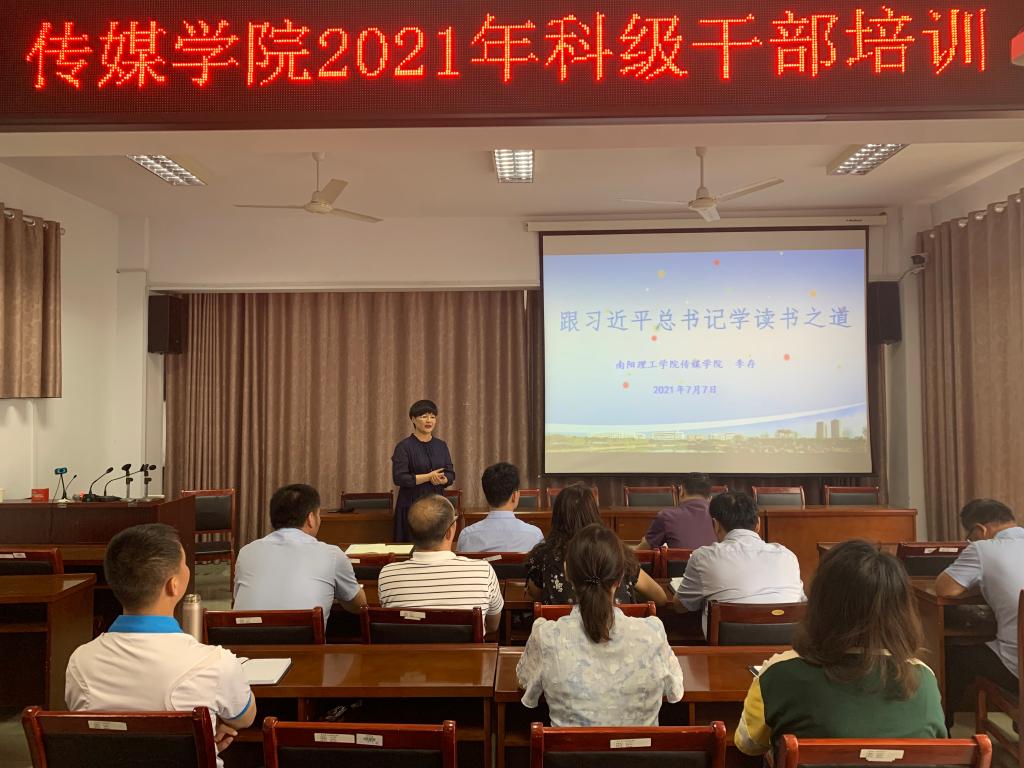 随后,学院院长李存作了《跟习近平总书记学读书之道》的主题报告。她从习近平总书记“爱读书、读好书、善读书”的倡导谈起,通过“书的魅力何在,为何要爱读书”的发问,解析分享了习近平总书记在读书过程中的感悟,并强调了读书对个人思维提升和建设社会主义文化强国的重要意义。她指出科级干部“读什么书”,需要根据专业与岗位“缺什么,补什么”,并分享了她读书过程中总结的“磨砺心、争胜心、别裁心、执着心、平常心”的读书方法。最后,她鼓励大家要积极履行职责,钻研业务,干一行,爱一行,精一行,争做职责内的行家里手。