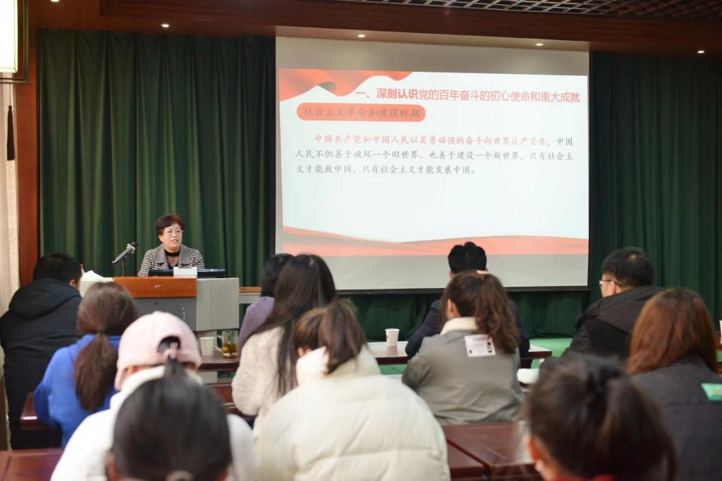 本网讯(记者/鲁静薇 学生记者/朱爱玲)2月24日下午,校党委书记刘荣英走进我院,为师生宣讲党的十九届六中全会精神,给大家上了一堂精彩的思政课,学院领导班子及师生代表参加。