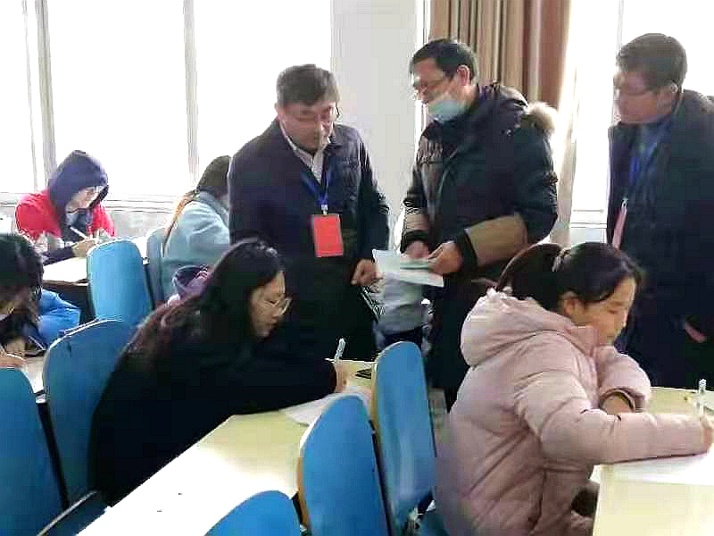 本网讯 12月23日上午,校长安士伟深入传媒学院期末考试各考场,对考试期间教师履责、考风考纪等情况进行全面巡查。校党委委员、组织部部长董豪,校党政办主任冯传亭,教务处副处长刘尚争等一同参加巡查。