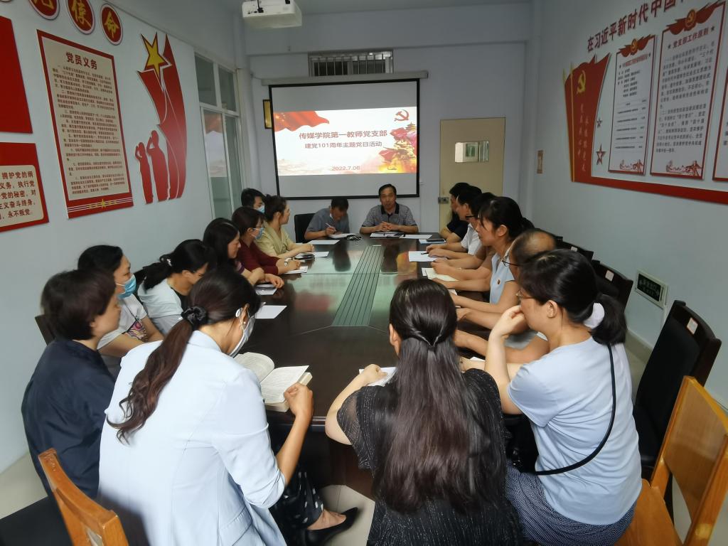 本网讯(特约记者/张旭东)为庆祝中国共产党成立101周年,不忘初心使命,汲取奋进力量,7月6日上午,传媒学院第一教师党支部以“喜迎二十大奋进新征程”为主题,在党员活动室隆重开展庆祝中国共产党成立101周年主题党日活动。
