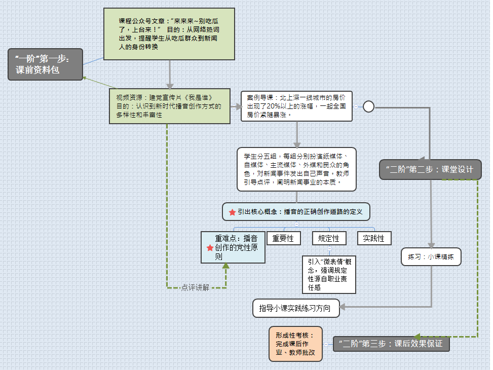“课程思政”系列活动中期,传媒学院开展了以“示范带动 同向同行”为主题的教学观摩课堂。国家级、省级教学技能竞赛获奖教师李艳丹、陈硕、吴倩倩分别主讲了《晚会开场白》《现场报道》《重音、停连的运用》三场别开生面的课程思政示公开示范课,运用创新思维将思政教学落到实处。坚持问题与目标、守正和创新相结合,分层次、分阶段设计合理的教学任务,建立灵活的评价标准和评估方式,健全思政教育全过程考核机制,以定制化教学提高课程思政与专业教育的契合度。