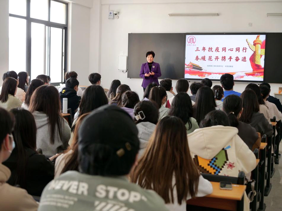 座谈结束,刘书记登上讲台,应约为2022级汉语言专业的学生上了一堂题为《三年抗疫同心同行,春暖花开携手奋进》的思政课。在60分钟的课堂上,她从“坚守人民至上,书写抗疫答卷”“坚持问题导向,直面担忧质疑”“坚定奋斗底色,点亮人生春天”三个方面,层层深入,指出以习近平同志为核心的党中央始终坚持人民至上、生命至上,统筹疫情防控和经济社会发展取得重大积极成果;要正确看待疫情防控政策调整过程中可能出现的现象或问题,保持客观理性认知,不断增强辩证思维能力;勉励广大青年要坚定不移听党话、跟党走,立志做有理想、敢担当、能吃苦、肯奋斗的新时代好青年,让青春在全面建设社会主义现代化国家的火热实践中绽放绚丽之花。