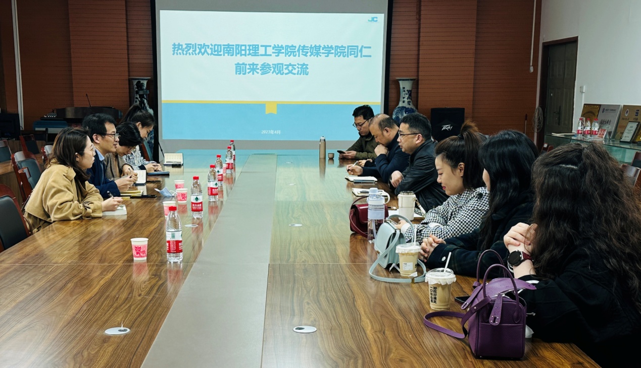 本网讯(特约记者/吴倩倩)4月3日,我院播音与主持艺术专业负责人、网络与新媒体专业负责人一行5人赴河南工业大学新闻与传播学院考察交流。双方就专业建设、创新创业、实习就业、人才培养等方面进行了深入的交流和探讨。