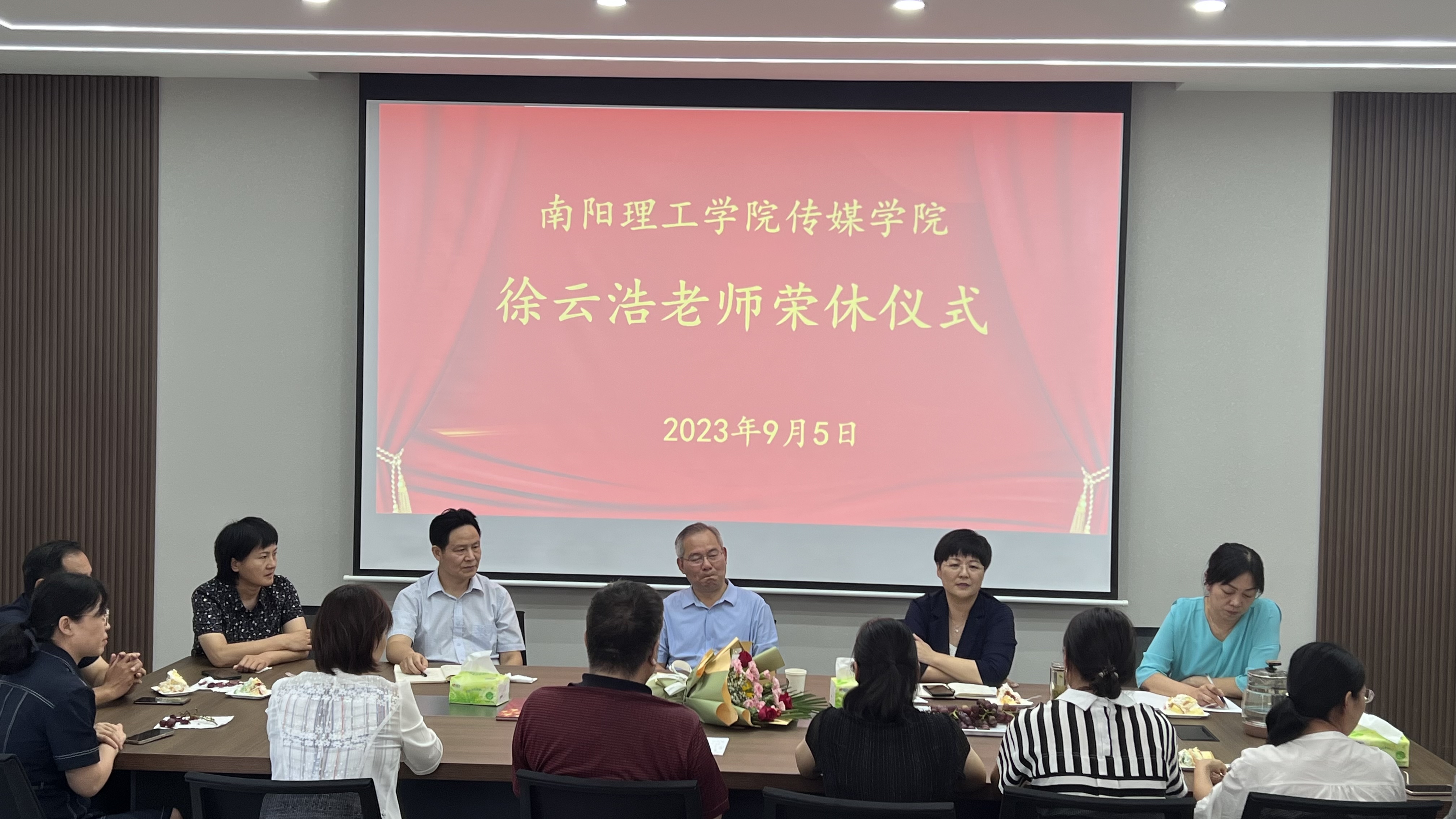 本网讯(特约记者/张娜)2023年9月5日下午,传媒学院在会议室为汉语言文学专业徐云浩老师举办了一场温馨而庄重的荣休仪式。学院领导和汉语言文学专业老师出席了本次活动,会议由学院党委书记刘书营主持。