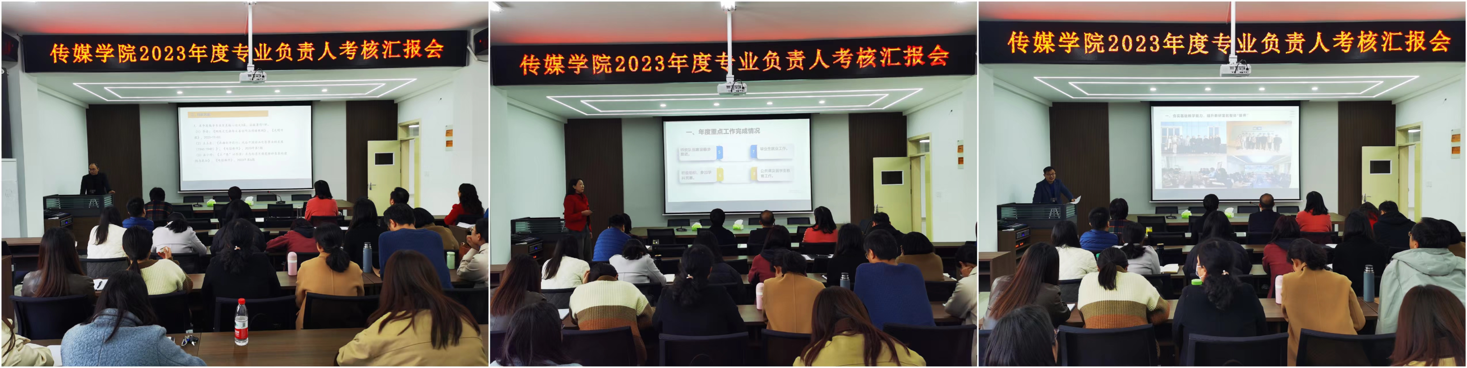 会上,广播电视编导、汉语言文学、网络与新媒体以及播音与主持艺术等四个专业的负责人,围绕2023年度各专业发展的日常教学、教研科研、专业特色发展、学科队伍建设、学生实践活动等关键问题进行了系统的汇报。同时,各负责人以求真务实的态度,剖析了当前专业发展中所面临的问题与挑战,并有针对性地提出了改进策略与优化措施,对未来一年的专业发展方向、专业建设的核心举措进行了前瞻性布局和规划。