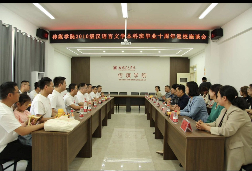 本网讯(特约记者/张允)5月2日下午,传媒学院“十年回首 情系南工”2010级汉语言文学本科班毕业十周年返校活动成功举办。当天,传媒学院为校友返校精心安排了系列活动,副校长葛晨光、招生与就业处处长祝孔涛、传媒学院领导及时任2010级汉语言文学本科班教师代表参加活动。
