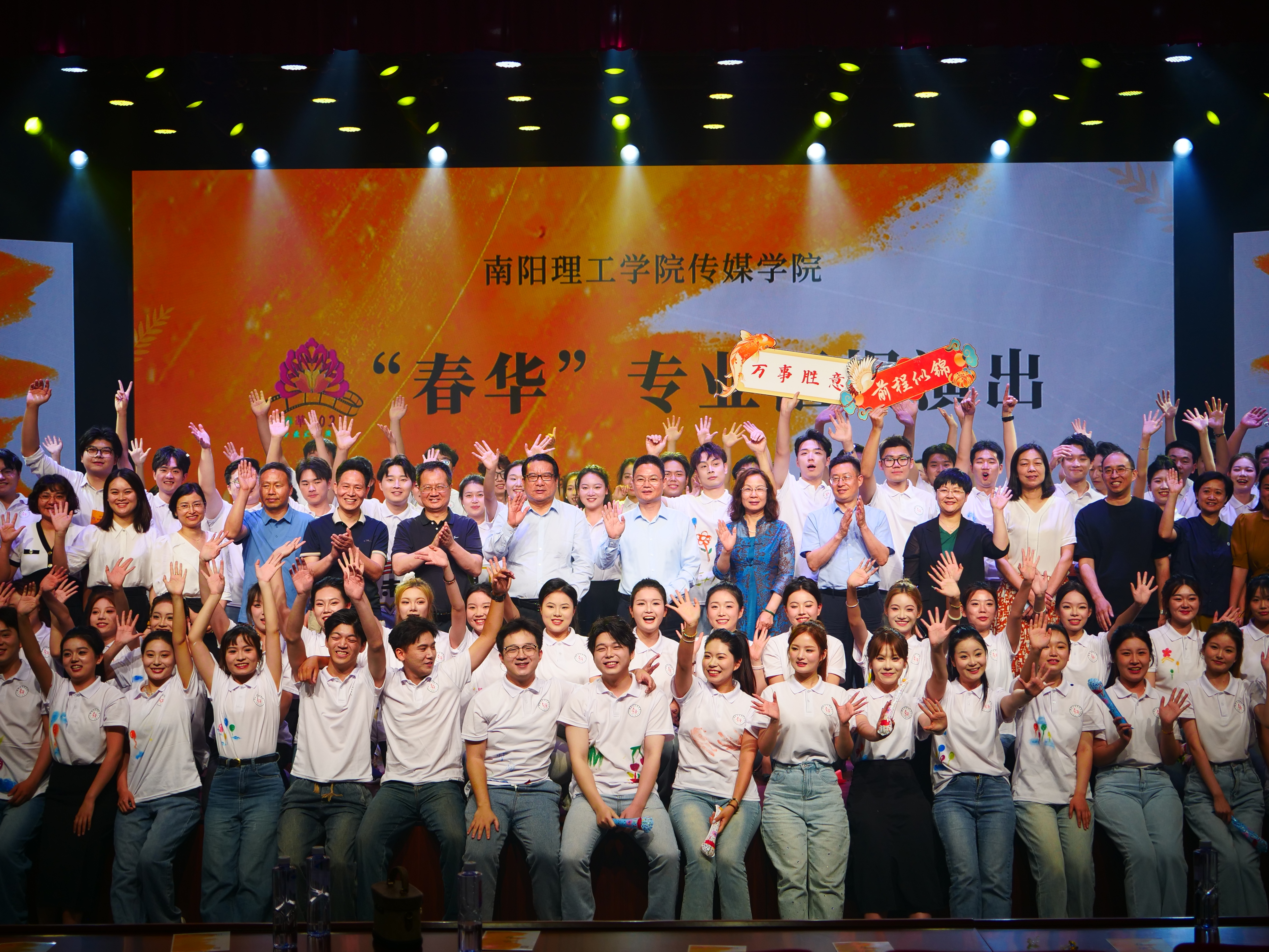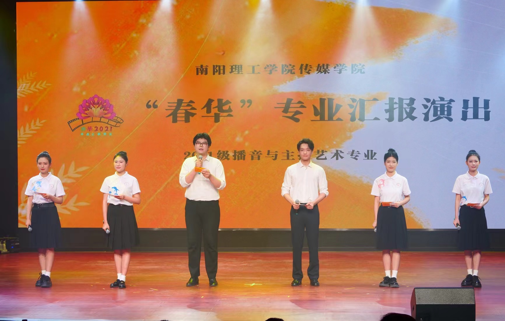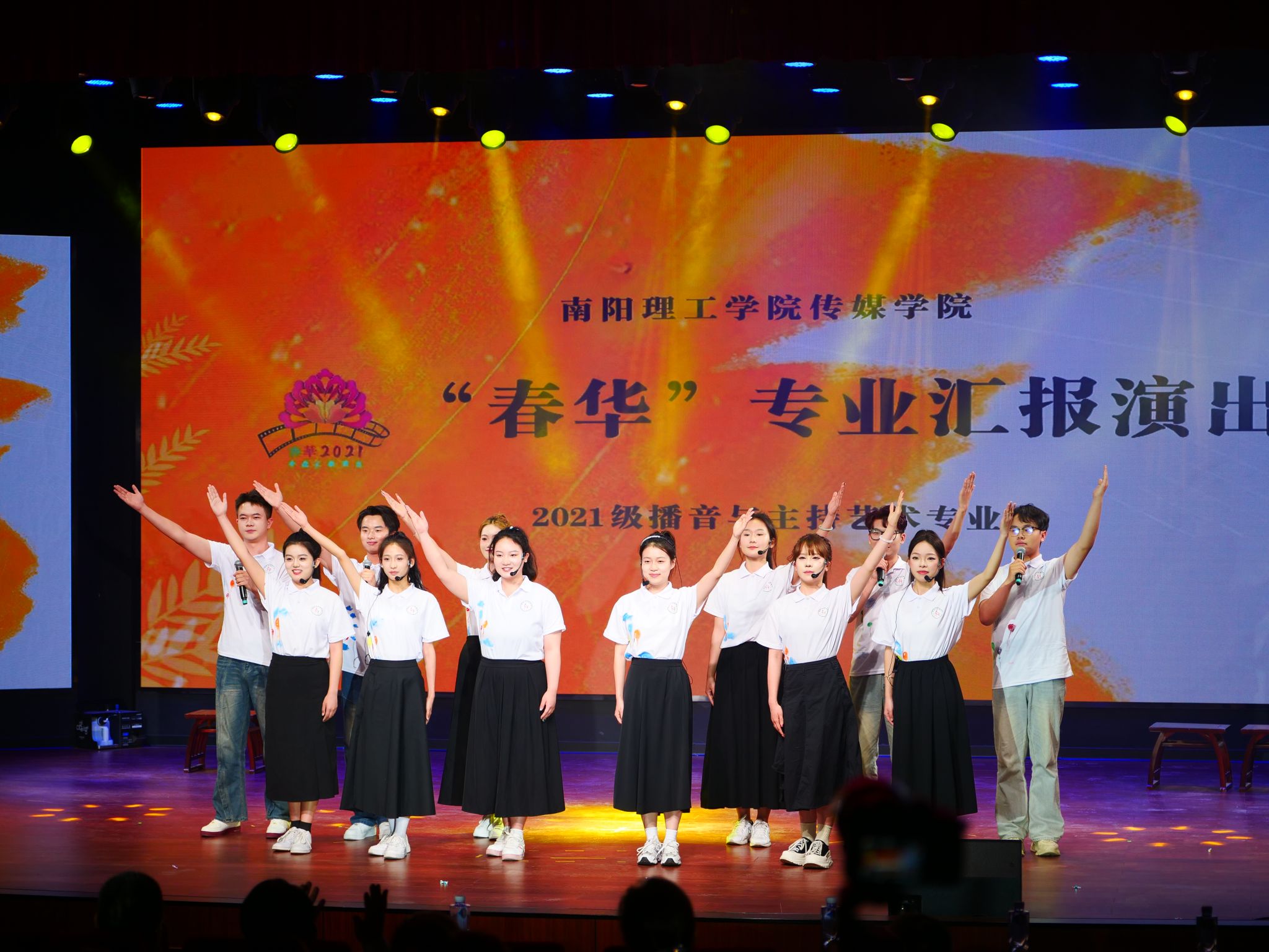 本网讯(特约记者/吴倩倩)2024年6月4日晚,南阳理工学院传媒学院播音与主持艺术专业2021级“春华”汇报演出在南阳理工学院东校区全媒体演播厅精彩上演。学校校长郝好山,党委副书记张爱红,副校长葛晨光、蔡广宇 、高芳放,部分行政处室领导以及传媒学院的师生参加本次活动。