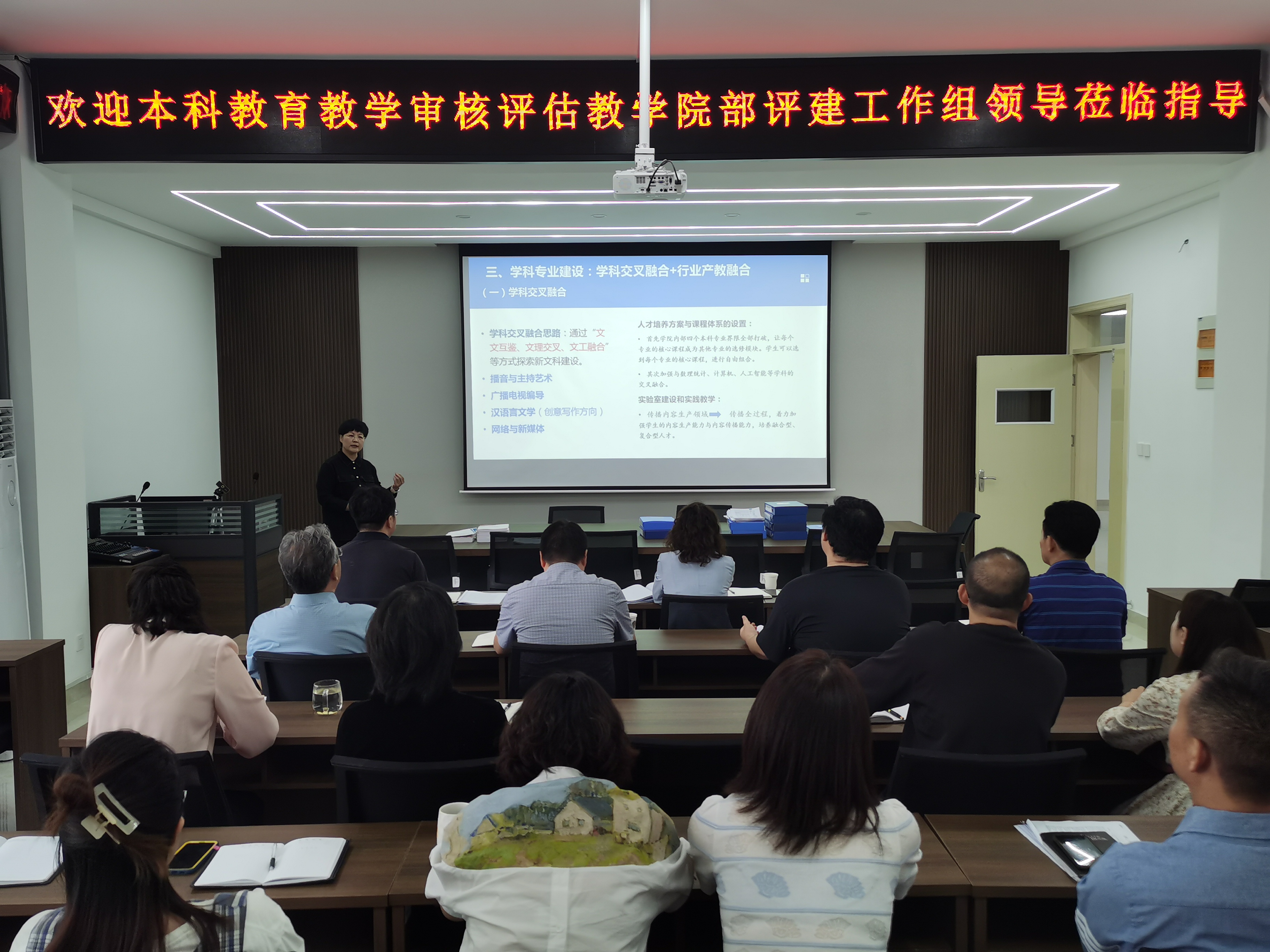 本网讯(特约记者/马腾飞)9月26日下午,学校本科教育教学审核评估教学院部评建检查工作组、党委副书记张爱红一行5人到传媒学院进行了全面、深入的检查与指导。学院领导班子、各专业负责人和各科室主任参加会议。